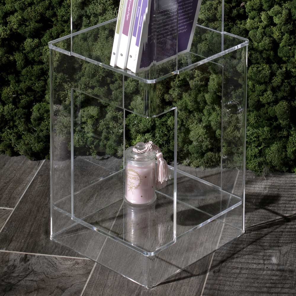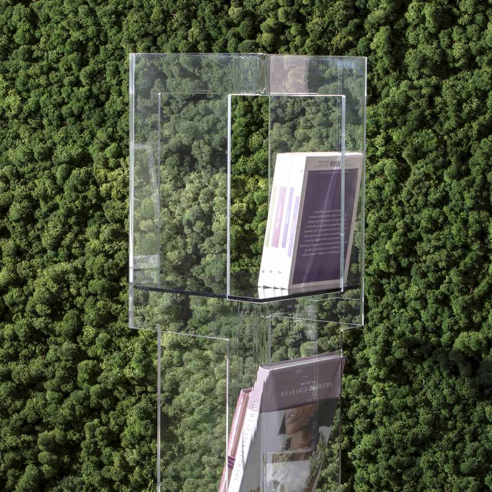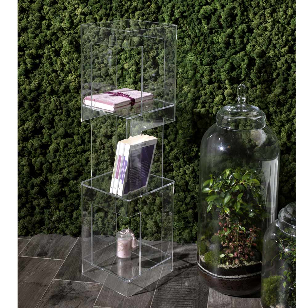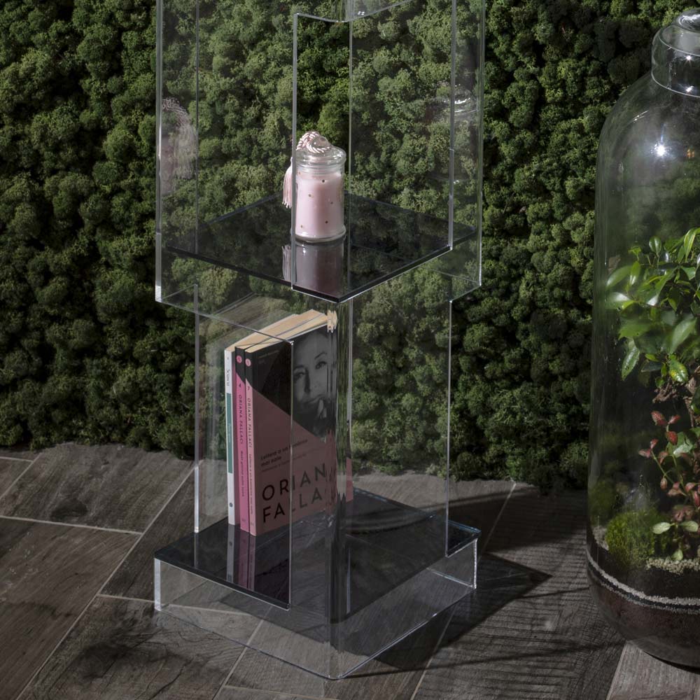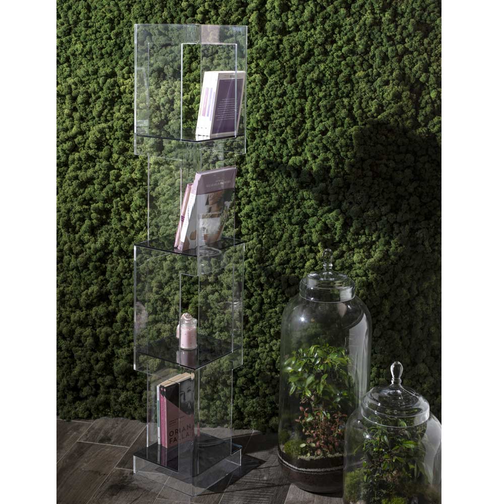 Raft librash në këmbë të pavarur me kristal akrilik me 2 përfundime dhe 2 përmasa të prodhuara në Itali.
