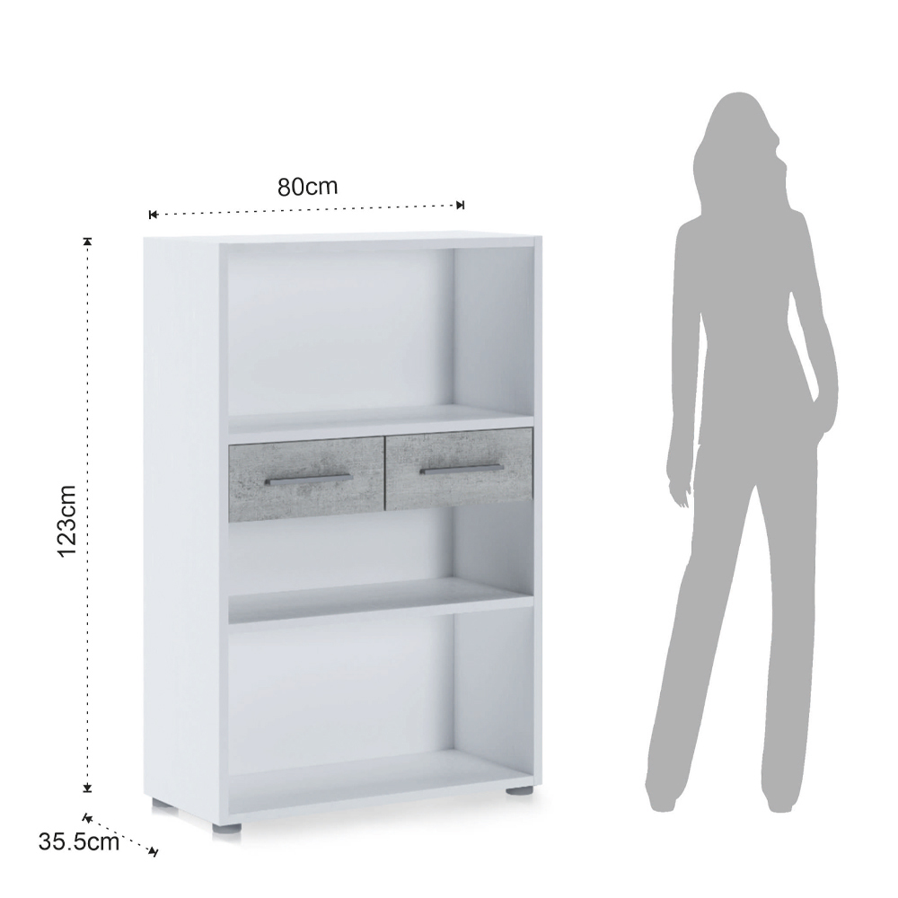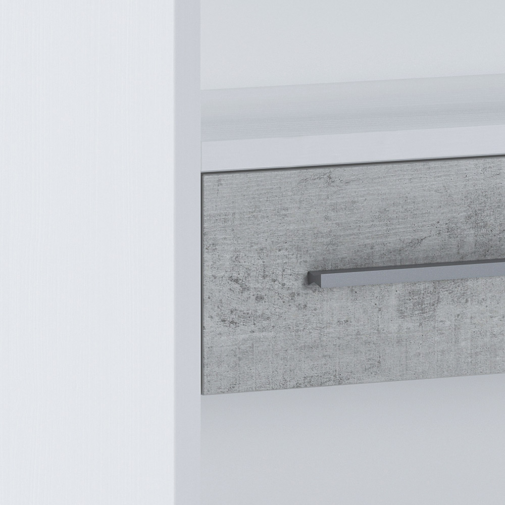 Raft librash i bërë me panele ekologjike të grimcave të drurit të mbuluara me melaminë me përfundim të poreve të hapura me larsh dhe ballina të sirtarëve në melaminë të përfundimit të çimentos. Kjo pjesë e mobiljeve me përfundime të thjeshta dhe lineare është perfekte për të kompletuar arredimin e çdo ambienti ditor dhe me kontratë. Është një artikull që ju lejon t'i mbani librat dhe objektet tuaja të rregullta dhe t'i ekspozoni në mënyrë që t'i keni gjithmonë pranë, por në rregull. Falë materialeve të përdorura për prodhim, cilësia dhe rezistenca maksimale garantohet edhe me kalimin e kohës.