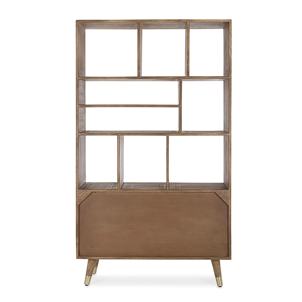 Raft librash të pavarur prej druri mango me dyer të ricikluara dhe doreza çeliku.