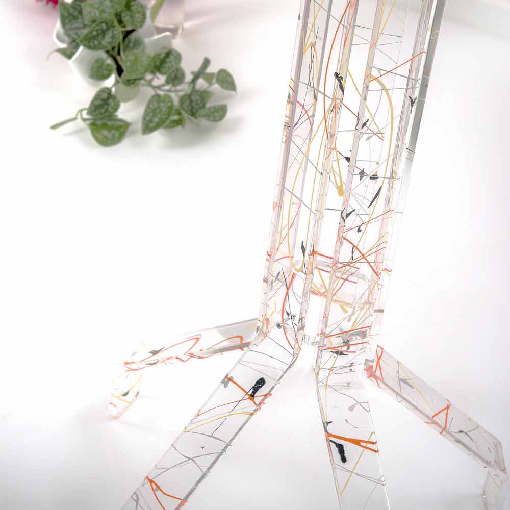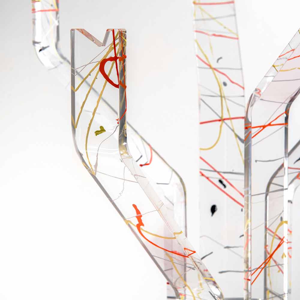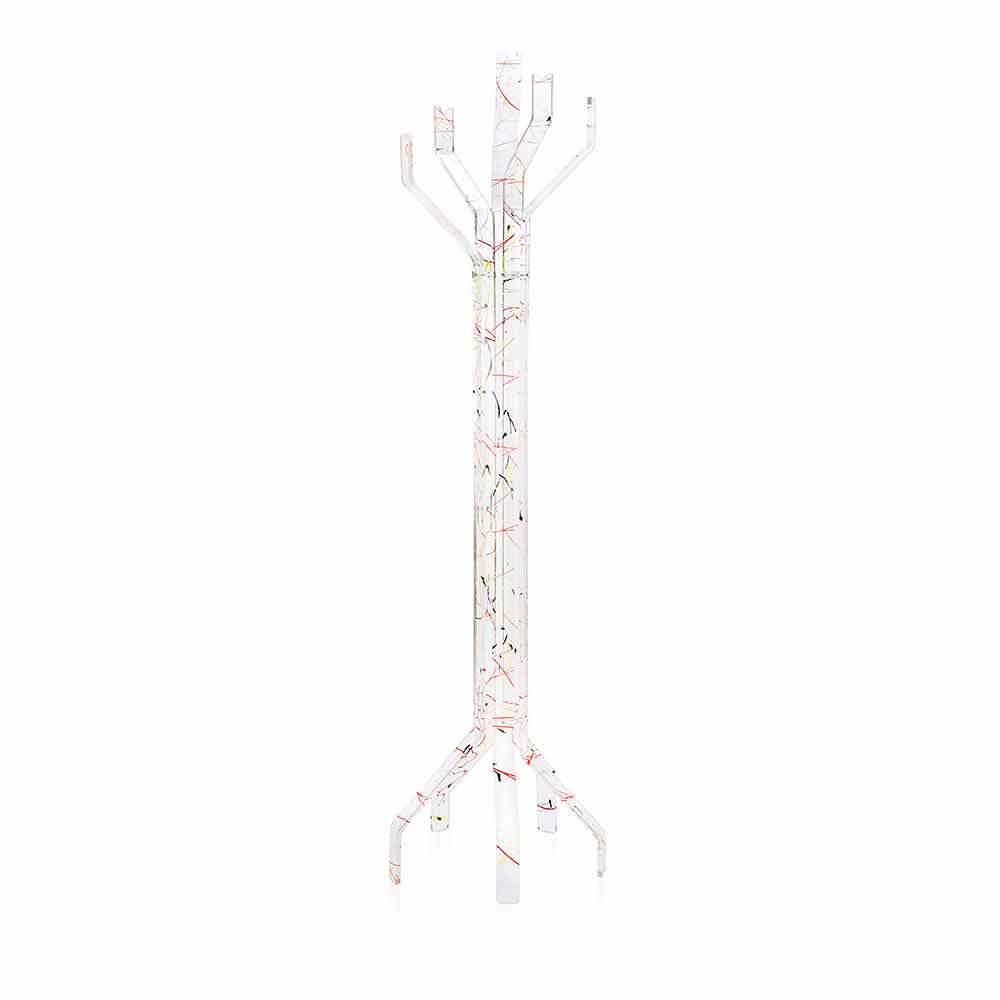 Veshja moderne me pallto prej leshi me dysheme, e bërë në Itali, Andrea Andrea është një varëse rrobash asimetrike me 5 krahë, e bërë nga pleksiglasi polimer PMMA 100% i virgjër PMMA me përfundime bojërash duke e bërë atë shumëngjyrësh.