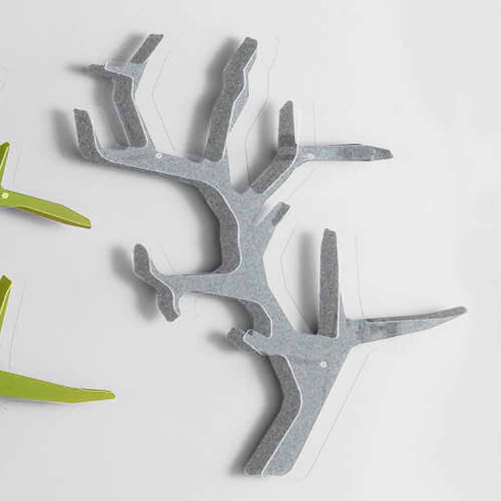 Raft mur origjinal i bërë në Itali me një formë dege me një strukturë të përbërë nga dy pllaka pleksiglasi (një transparente dhe një me ngjyra).