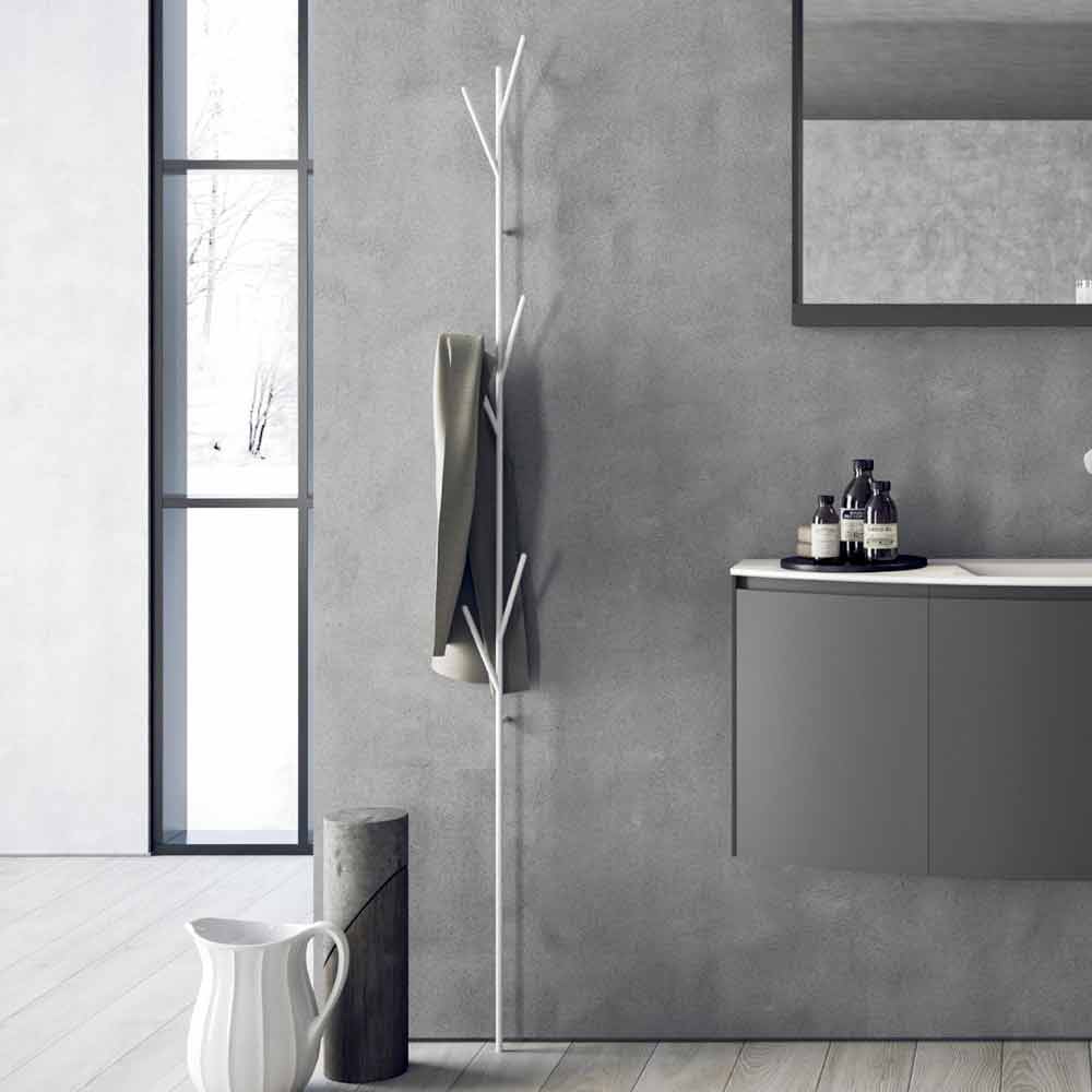 Mbështetëse pallto në formë peme, dizajn modern në metal të bardhë ose krom prodhuar në Itali.
