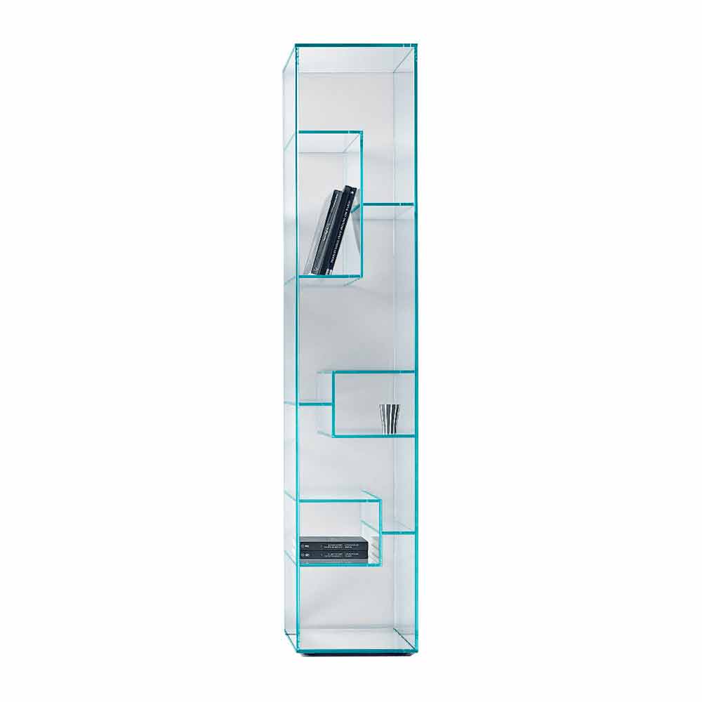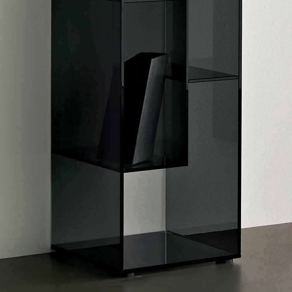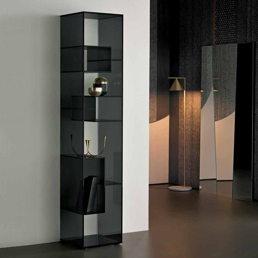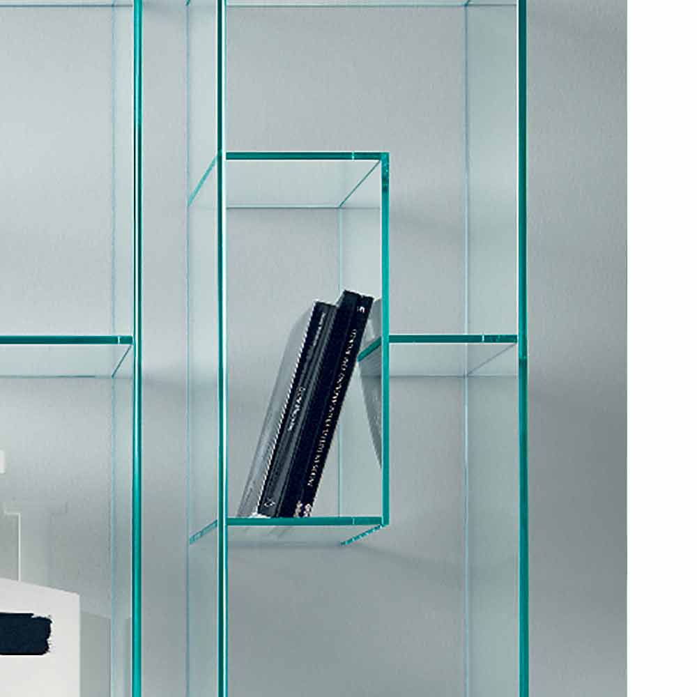 Kjo raft librash me ekran karakterizohet nga dizajni i saj i vendosur dhe elegant i bërë tërësisht nga xhami tepër i pastër ose i tymosur.