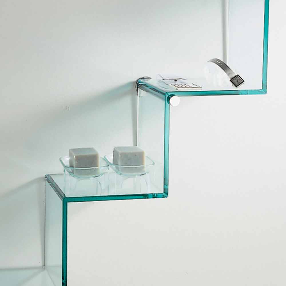 Kjo raft librash për dhomën e ndenjes karakterizohet nga dizajni i saj intrigues dhe origjinal i bërë tërësisht nga xhami transparent me një trashësi 12 mm.