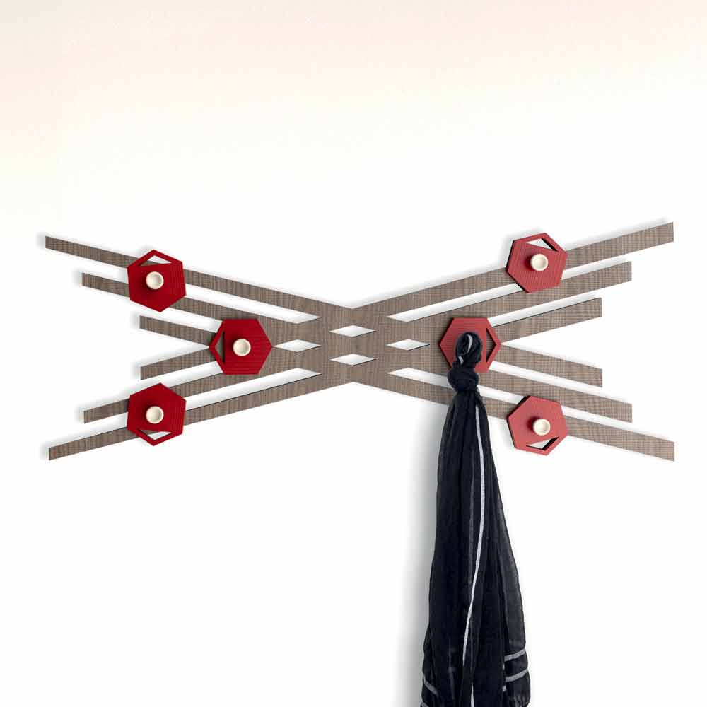 Raft pallto hyrëse në mur, dizajn modern në dru me ngjyrë, i bërë në Itali.
