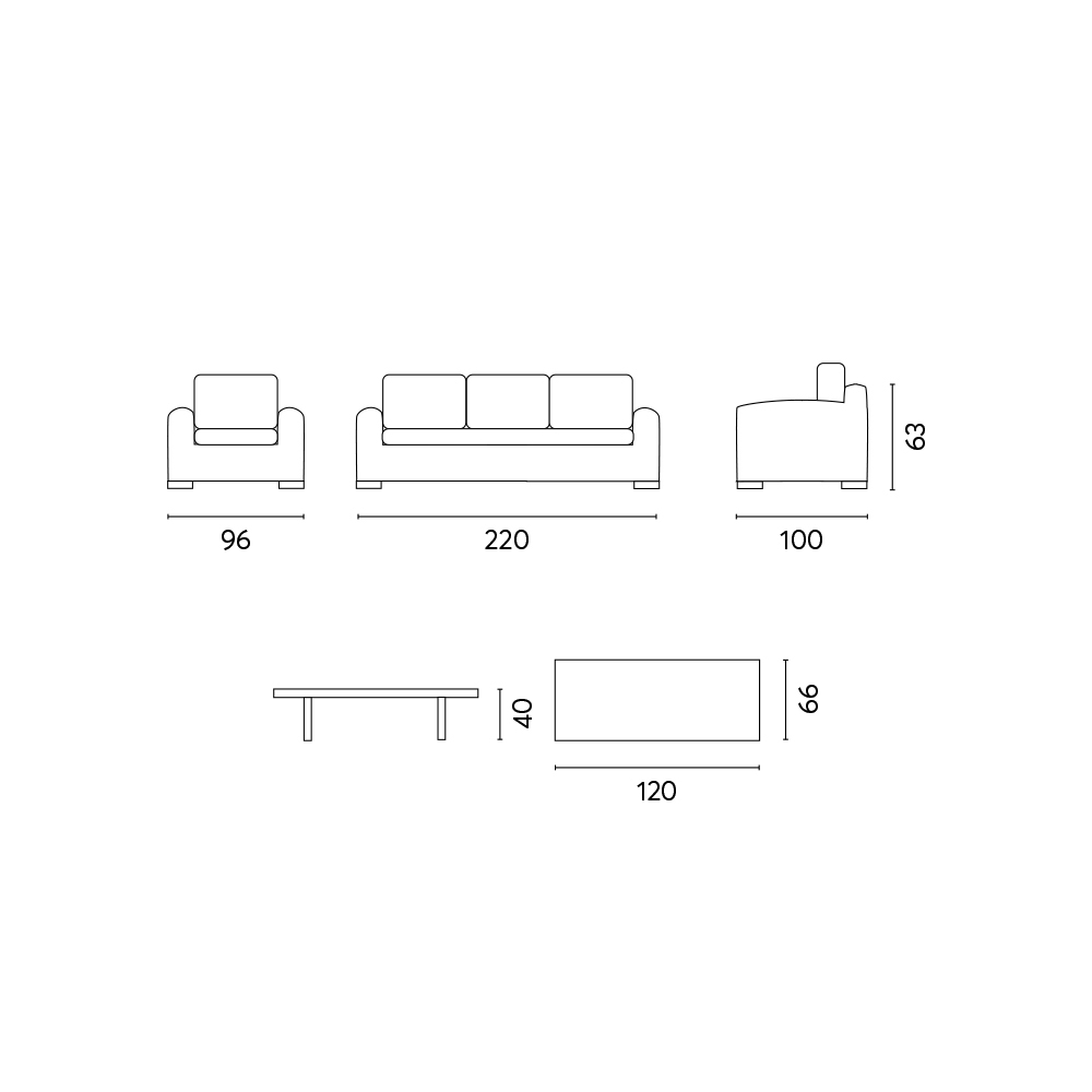 Madhësitë e disponueshme:- kolltuqe: M 96 x P 100 x L 63 cm;