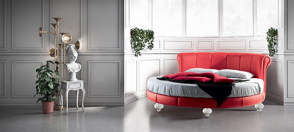 Krevat dopio i rrumbullakët pa kontejner i veshur me susta me lëkurë eko, i punuar me dorë në Itali.