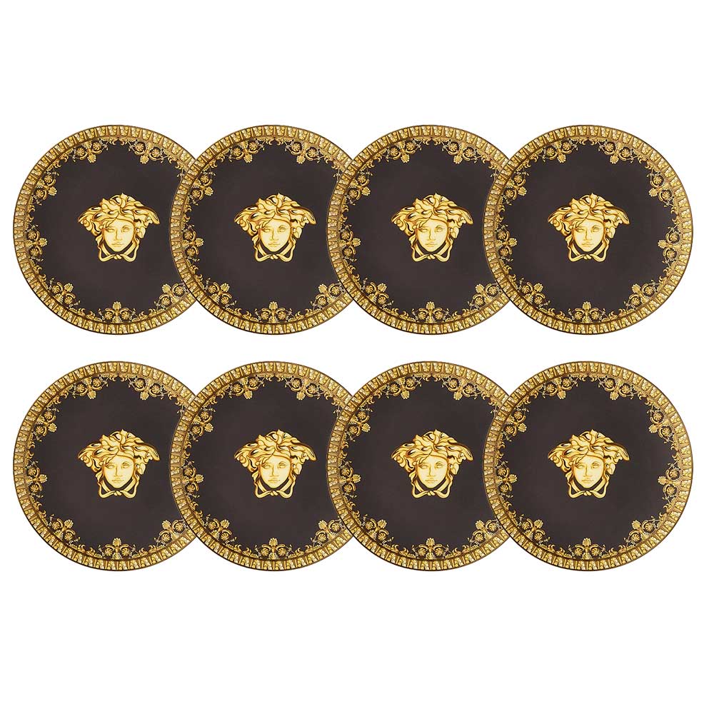 Pjata "I Love Barok" nga Versace , e bërë nga porcelani i hollë , është thelbi i rafinimit dhe luksit të përjetshëm . Dizajni i sofistikuar përmban një sfond të zi të thellë, të pasuruar nga një kufi i zbukuruar me motive barok të artë që mishërojnë traditën artistike të maison. Në qendër, mbizotëron fytyra ikonike e Medusës , një simbol i fuqisë dhe sharmit të përjetshëm, duke i dhënë një karakter mbretëror dhe të veçantë kësaj kryevepre.