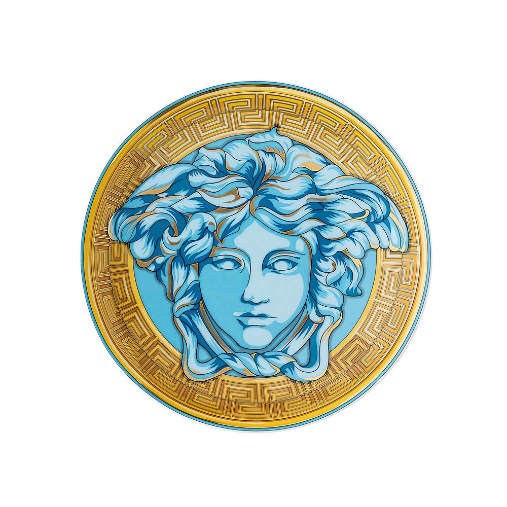 Pjatat e Bukës së Përforcuar Versace Medusa , të punuara nga porcelani i çmuar , mishërojnë një ekuilibër të përsosur midis artit dhe luksit bashkëkohor . Dizajni i guximshëm nxjerr në pah fytyrën legjendare të Medusa-s , simbolit ikonik të shtëpisë, e rrethuar nga një motiv i gjallë grek i artë dhe nuanca delikate që japin një prekje moderne dhe të rafinuar.