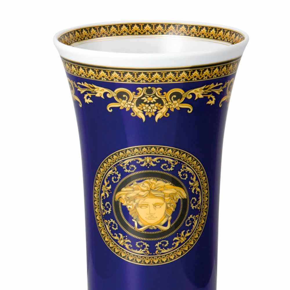 Vazo Porcelani Rosenthal Versace Medusa Blue Design Modern 26cm Vazoja fantastike e stilistit 26 cm nga Versace është pjesë e koleksionit elegant modern, i cili, i kombinuar me një magjepsje dhe magjepsje të rafinuar, kujton epokat e kaluara dhe shprehet në nuancën e ndezur të blusë dhe merr emrin Medusa Blue. Me Medusa Blue, një klasik i Maison është veshur me ngjyra të reja bashkëkohore. Koka e Medusës është ikona e koleksionit Versace që e bën këtë një shërbim klasik por në të njëjtën kohë një simbol luksi në tryezën bashkëkohore. NB. Mos lani në makinë larëse enësh, ju lutemi lani me dorë!
