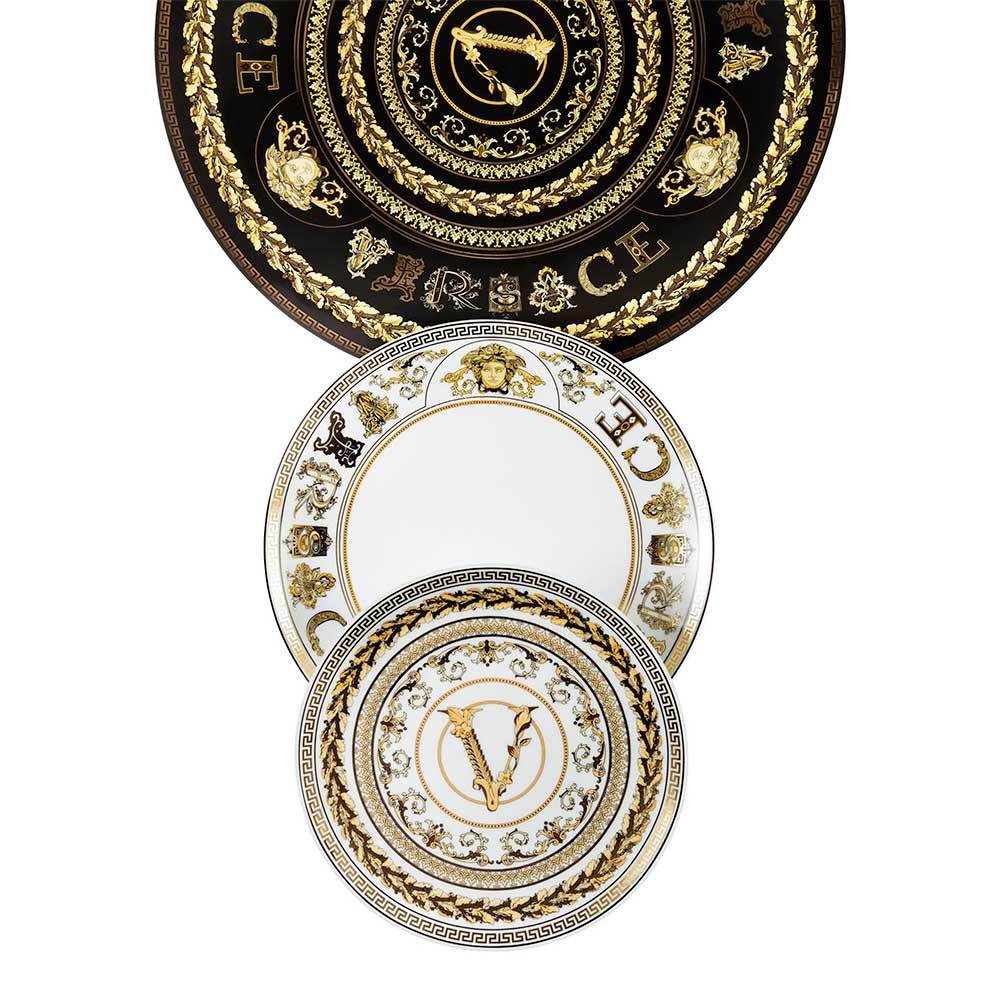 Plasma Virtus Gala nga Versace është një festë e vërtetë luksi dhe rafinimi , e punuar nga porcelani i çmuar . Dizajni i tij dallues kombinon ngjyrën e shkëlqyeshme me dekorimet vizuale të arit , të pasuruara me detaje barok dhe logon ikonike Versace "V", një simbol i elegancës së përjetshme.