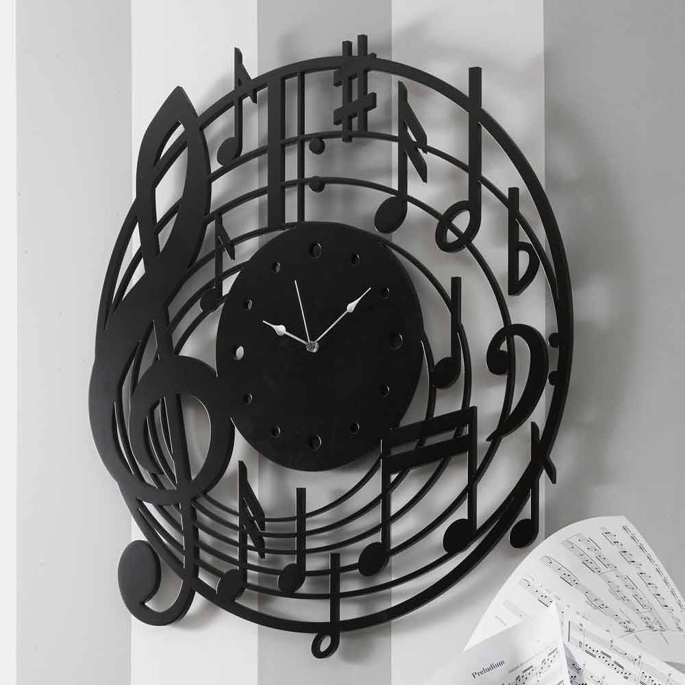 Ora me mure të mëdha, dizajn të rrumbullakët dhe modern me nota muzikore në dru të zi dhe të bëra në Itali.