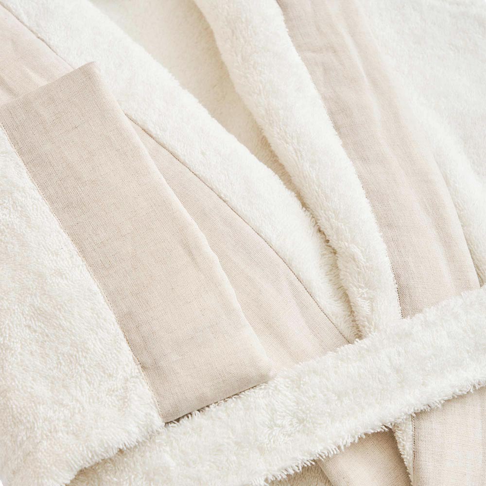 Rroba banjo me jakë shalli në tepsi të butë pambuku të pastër me tufë prej liri të pastër dhe monogram