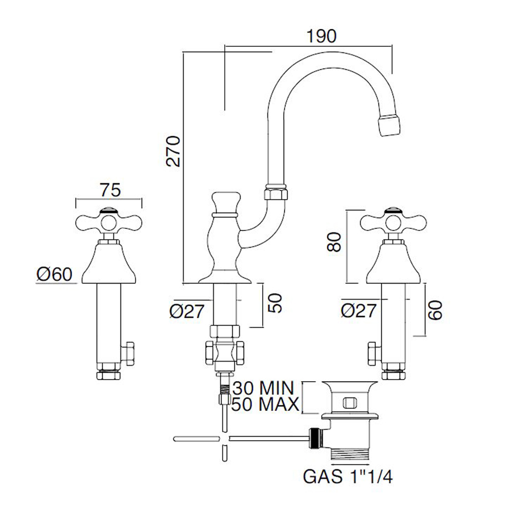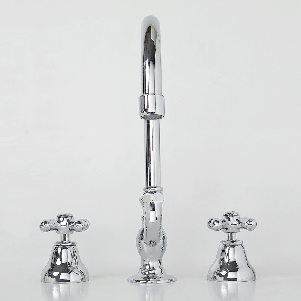 rubinet i mrekullueshëm i lavamanit me 3 vrima me grykë të lartë dhe kullues è tërësisht