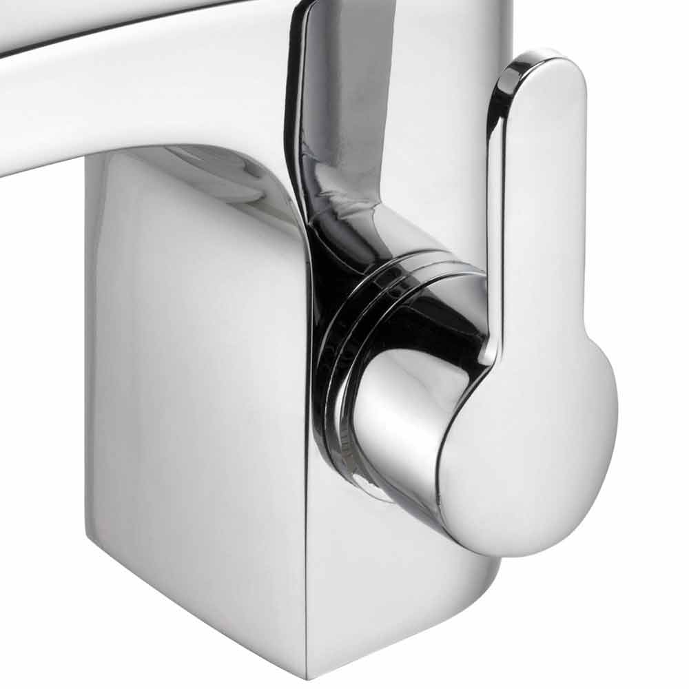 Linjat e saj karakterizohen nga kënde të drejta dhe forma gjeometrike të cilat, të kombinuara me kthesat e mrekullueshme, i japin jetë një modeli klasik dhe njëkohësisht modern, i aftë të martohet në mënyrë të përsosur me stilet më të larmishme të mobiljeve. Falë sipërfaqes elegante të kromit, kjo pjesë unike e mobiljeve është në gjendje të japë një dritë magjepsëse, duke mbushur banjën tuaj me personalitet dhe karakter.
