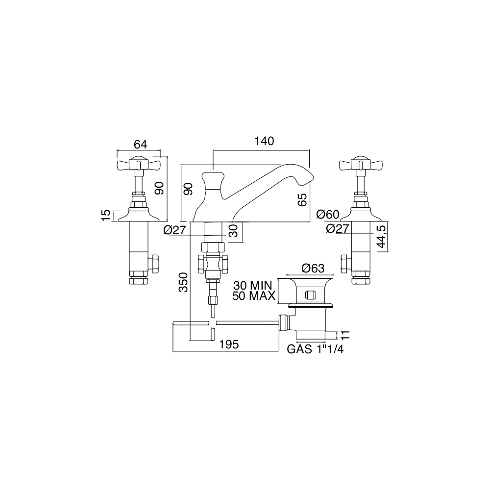 rubinet elegant i lavamanit 3-vrima me kullim, prej bronzi.