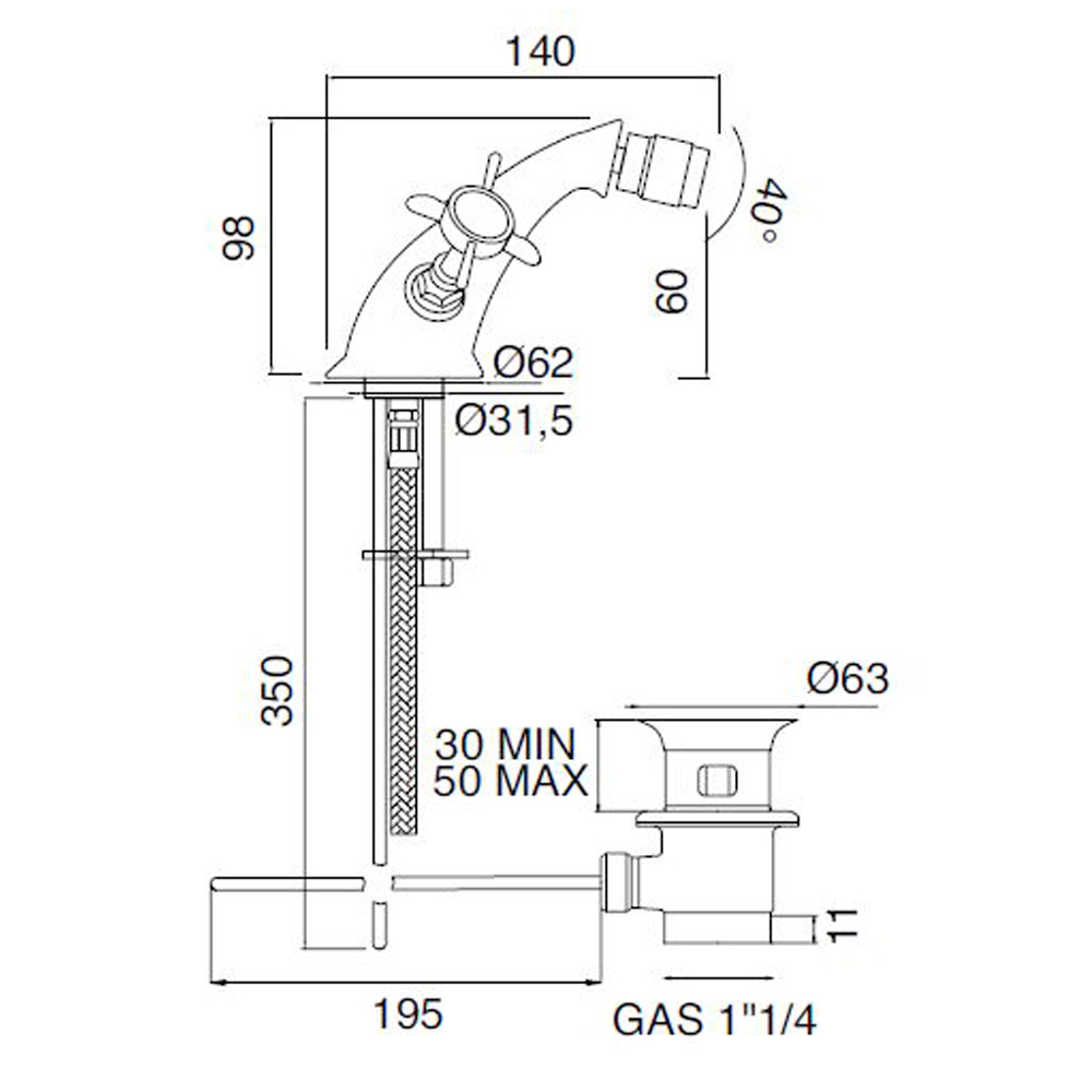 - Presioni minimal për funksionim të mirë: 0,5 bar.