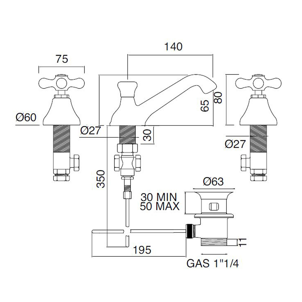 Rubineti lavaman me 3 vrima me kullues bronzi, artikull i punuar me dorë i prodhuar në Itali.