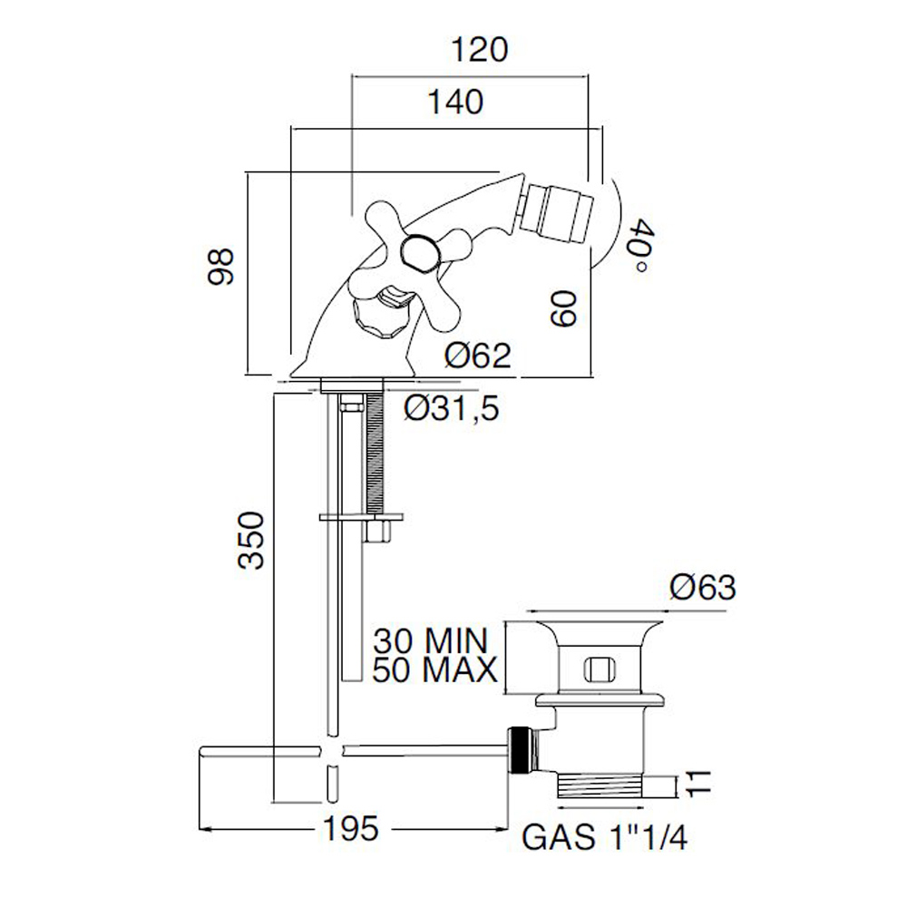 rubinet i hollë bideti me një vrimë për bidet me një vrimë me kullues è tërësisht