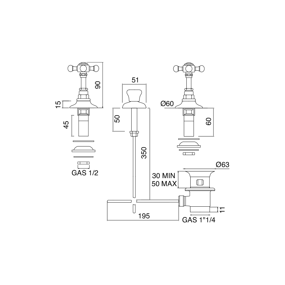 i bidetit me 3 vrima me flush dhe grykë të brendshme, prej bronzi.