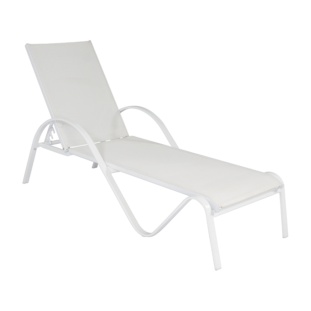 Struktura e aluminit siguron lehtësi dhe rezistencë ndaj korrozionit, duke e bërë këtë shezlong ideal për përdorim të jashtëm dhe të lehtë për t'u lëvizur. Veshja e tekstilit ofron mbështetje të rehatshme dhe të frymëmarrjes, perfekte për ditët e verës. Tekstili njihet për qëndrueshmërinë dhe rezistencën ndaj agjentëve atmosferikë, duke e mbajtur shezlongun të bukur dhe funksional me kalimin e kohës.