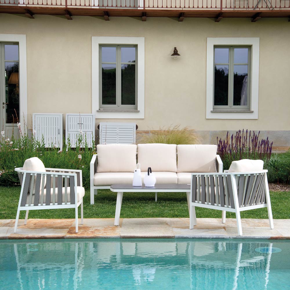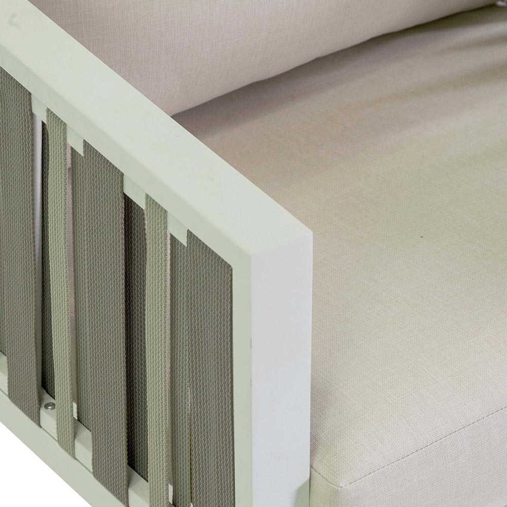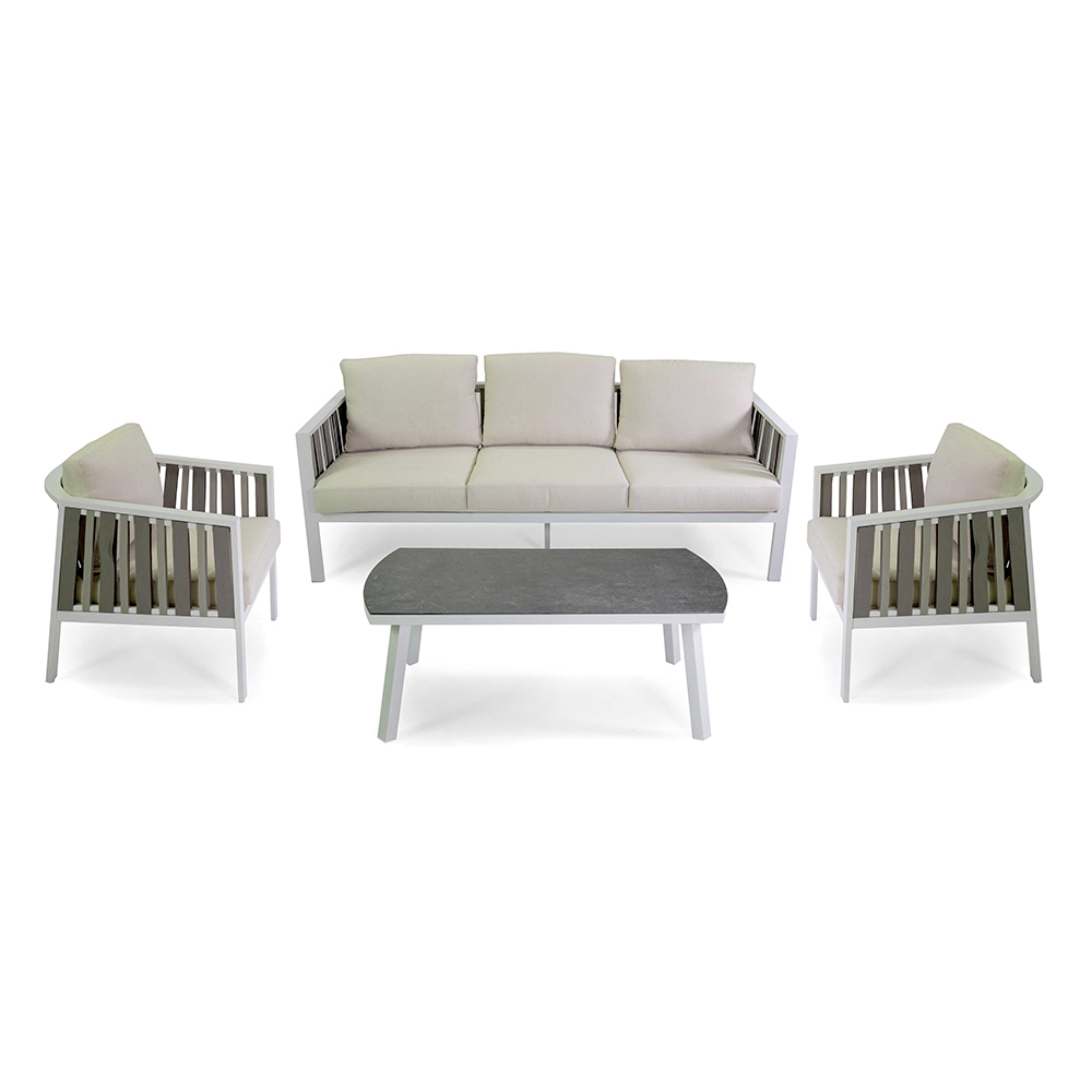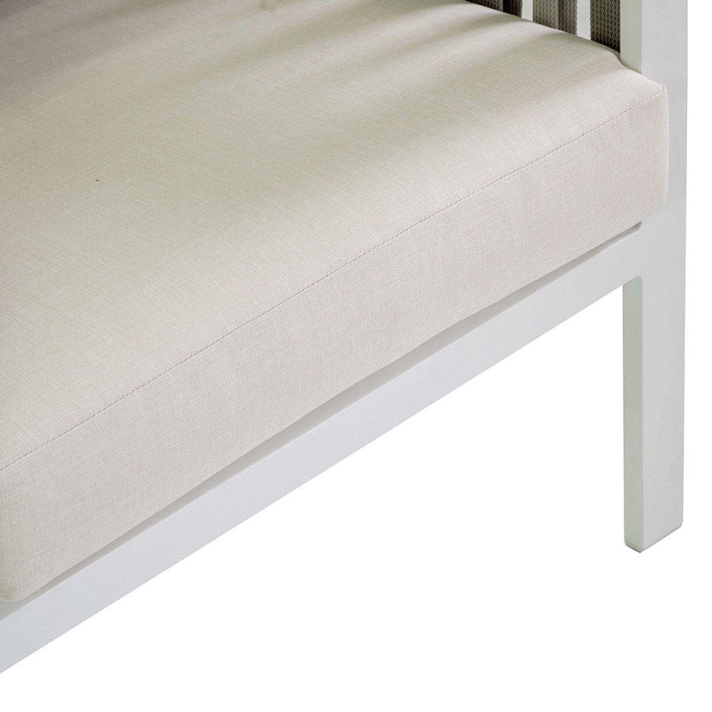 Linjat e pastra dhe një dizajn bashkëkohor kombinohen me një përzgjedhje materialesh me cilësi të lartë, duke ofruar një pamje të hijshme që lartëson menjëherë çdo hapësirë të jashtme. Vendet janë të mbushura bujarisht me jastëkë pëlhure rezistente ndaj motit, duke premtuar rehati të pakrahasueshme dhe mirëmbajtje të ulët.
