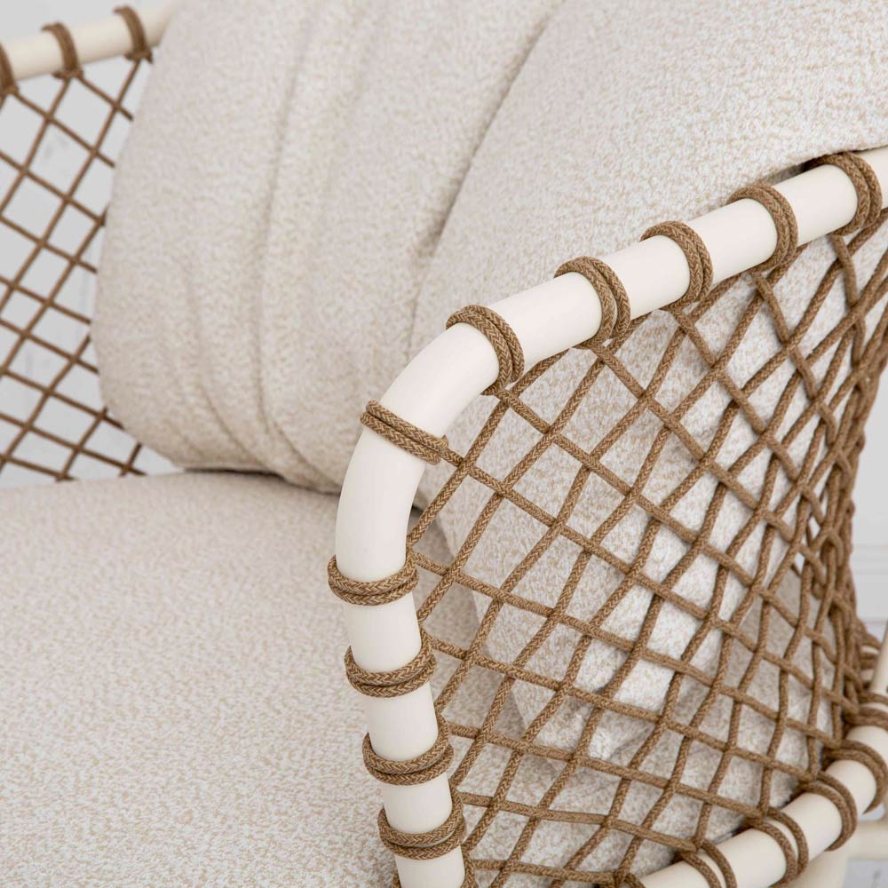 Dizajni i endur me litar sintetik krijon një efekt vizual magjepsës dhe tërheqës, i përsosur për t'i dhënë një prekje stili kopshtit ose tarracës tuaj. Jastëkët e butë, të mbushur dhe të mbuluar me pëlhurë , sigurojnë relaksim total dhe rehati superiore, ideale për momentet tuaja të pushimit ose për të pritur mysafirët tuaj me stil.