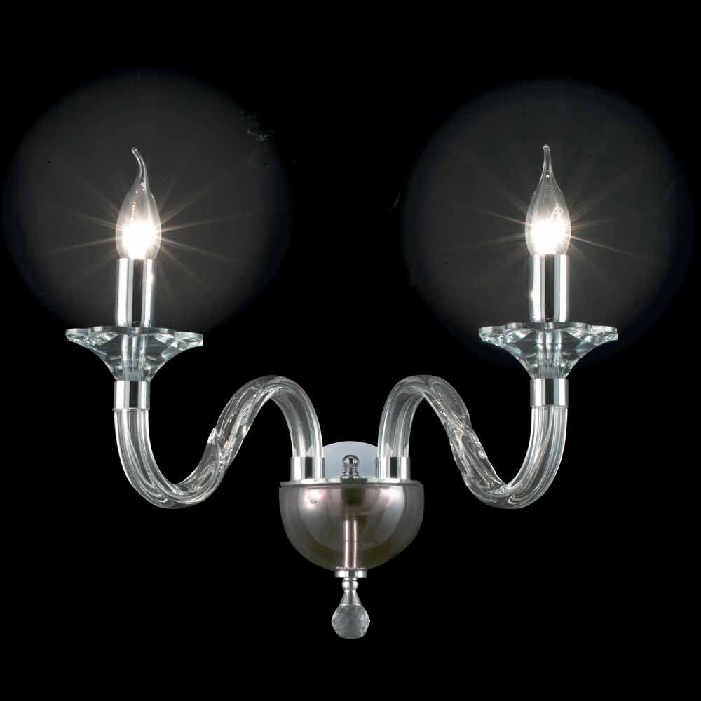 Llambë muri qelqi transparent i punuar me dorë me dekorime kristali. Mbarimet e kromuara. Llamba të lehta: 2 x E14 40W