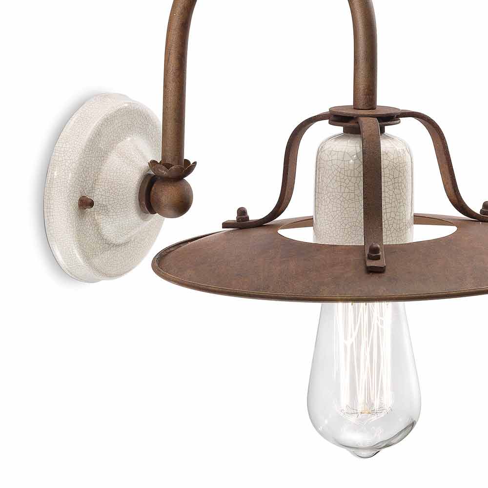 Llamba muri e stilit industrial në metal dhe qeramikë nga Ferroluce Kurorë e gjerë në metal ndryshk mat dhe detaje për të kompletuar një ekuilibër të formave të plota dhe boshe që plotësojnë stilin industrial. Është frymëzuar nga stili rustik amerikan. Llambë me ngjyra të zbehta dhe një shije të gjallë, është e thjeshtë dhe e përjetshme. Dritë e pastër pa mbrojtje. Një dizajn që i kundërvihet luksit, por që bashkëjeton në harmoni me të. Shikoni grafikun e ngjyrave dhe tregoni kodin e ngjyrave më të përshtatshme për ju në kutinë e duhur!