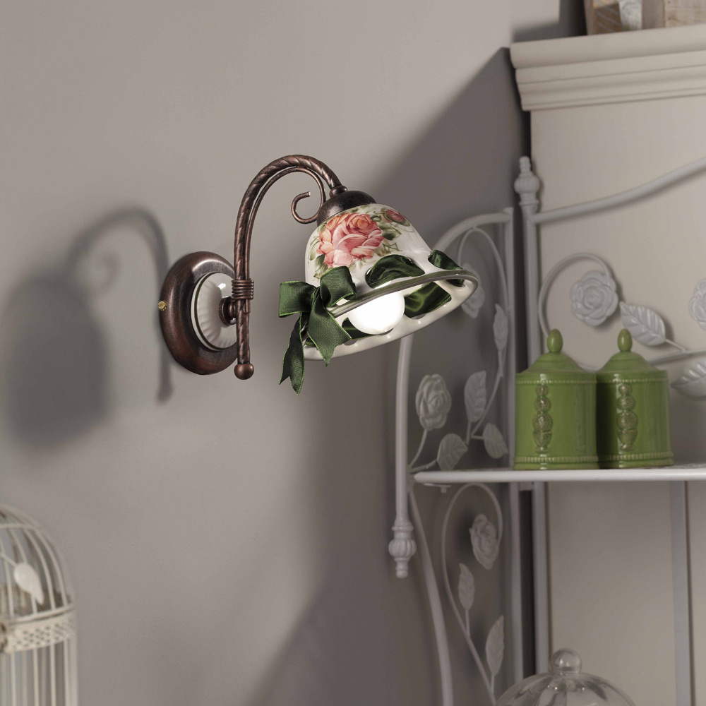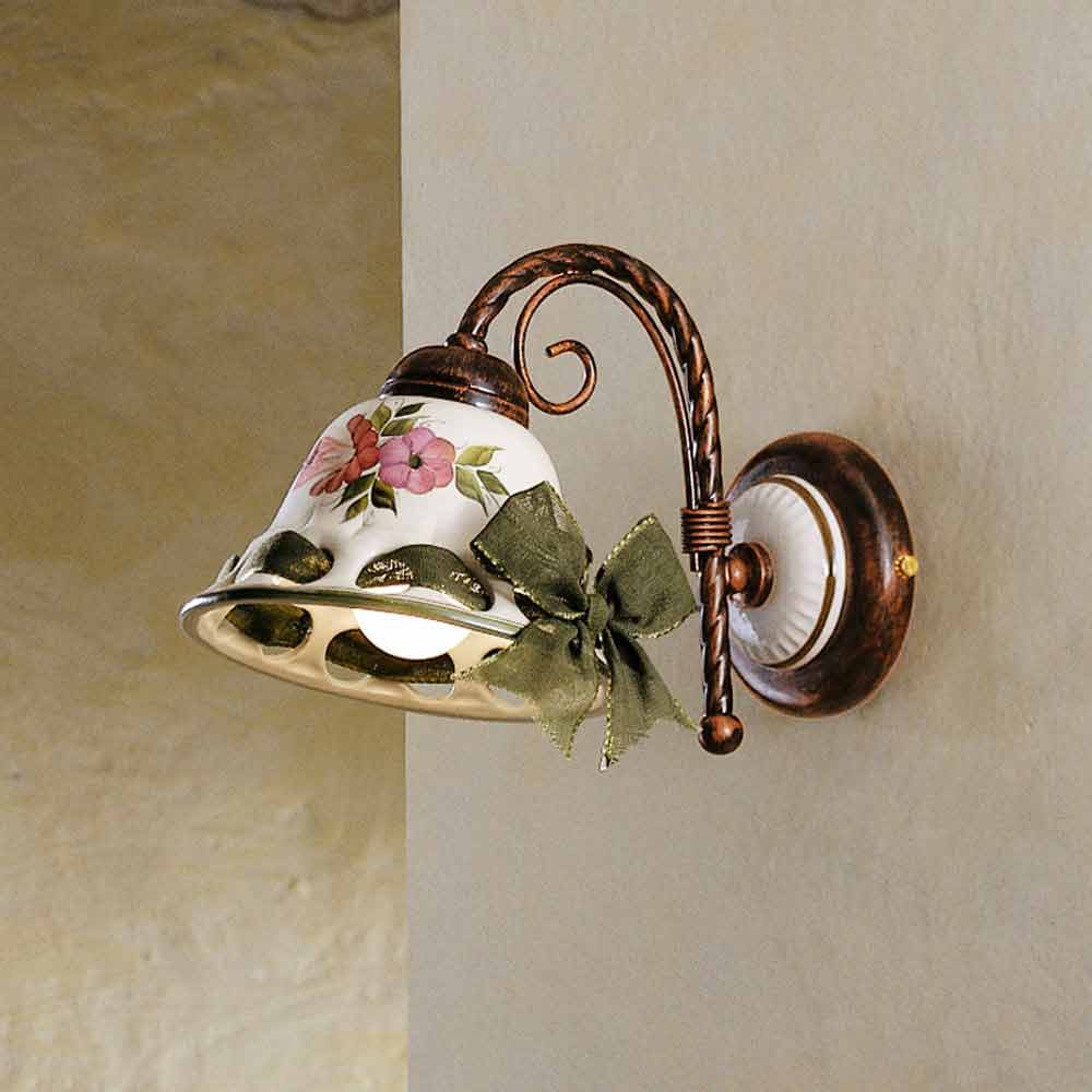 Llambë muri qeramike e dekoruar rustik nga Ferroluce Napoli Llambë qeramike e bardhë me shkëlqim e dekoruar tërësisht me dorë.
