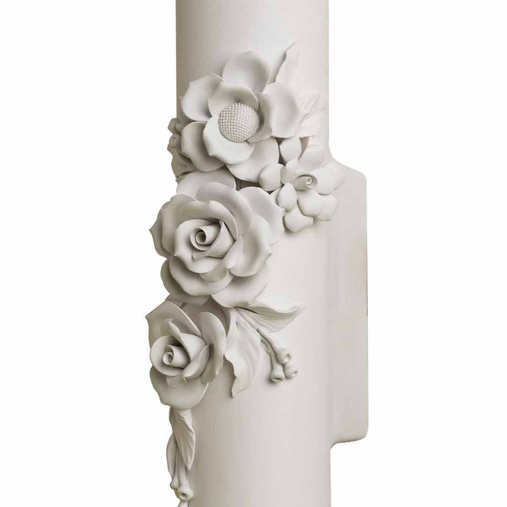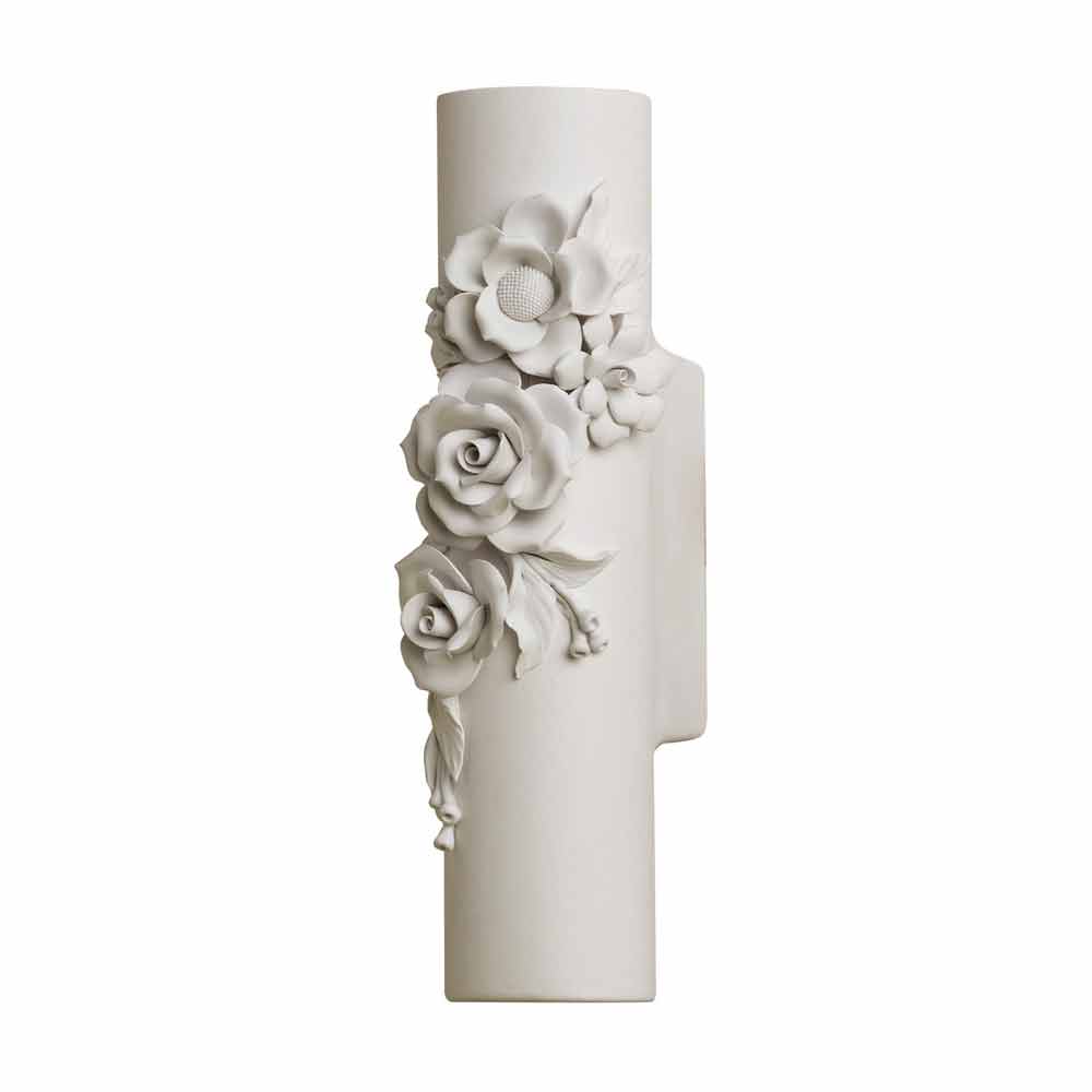 Cilindri i thjeshtë qeramik është mbështjellë me një shakullinë me lule që theksohet nga pastërtia e linjave stilistike dhe materialit. Nuk ka teprime, dizajni i ekuilibruar në mënyrë perfekte mund të futet në kontekste të ndryshme , nga ato më modernet për një prekje elegance të pastër, tek ato më klasike dhe industriale, për një atmosferë bashkëkohore dhe një kontrast që entuziazmon.