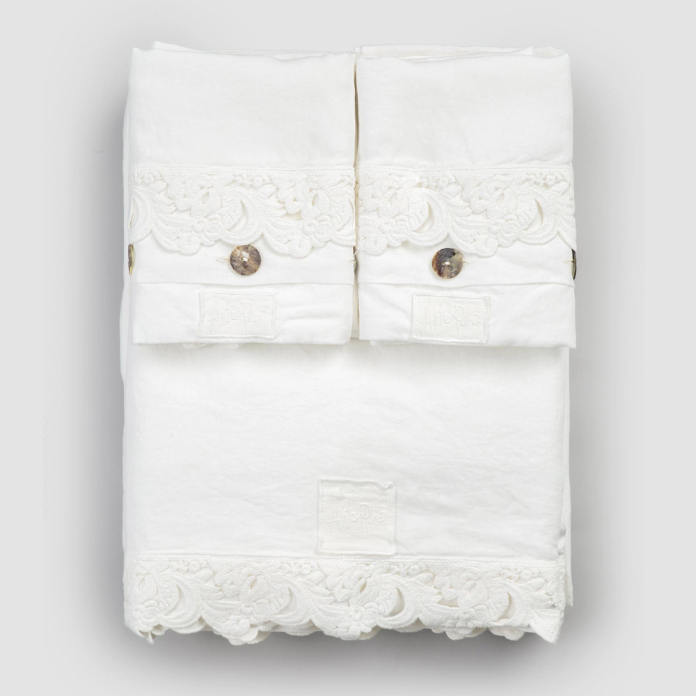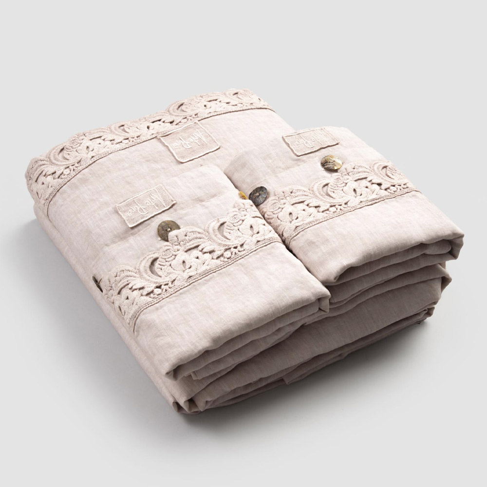 Komplet liri krevati dyshe me dantella harmonie ne dy ngjyra, luksoze prodhuar ne Itali.