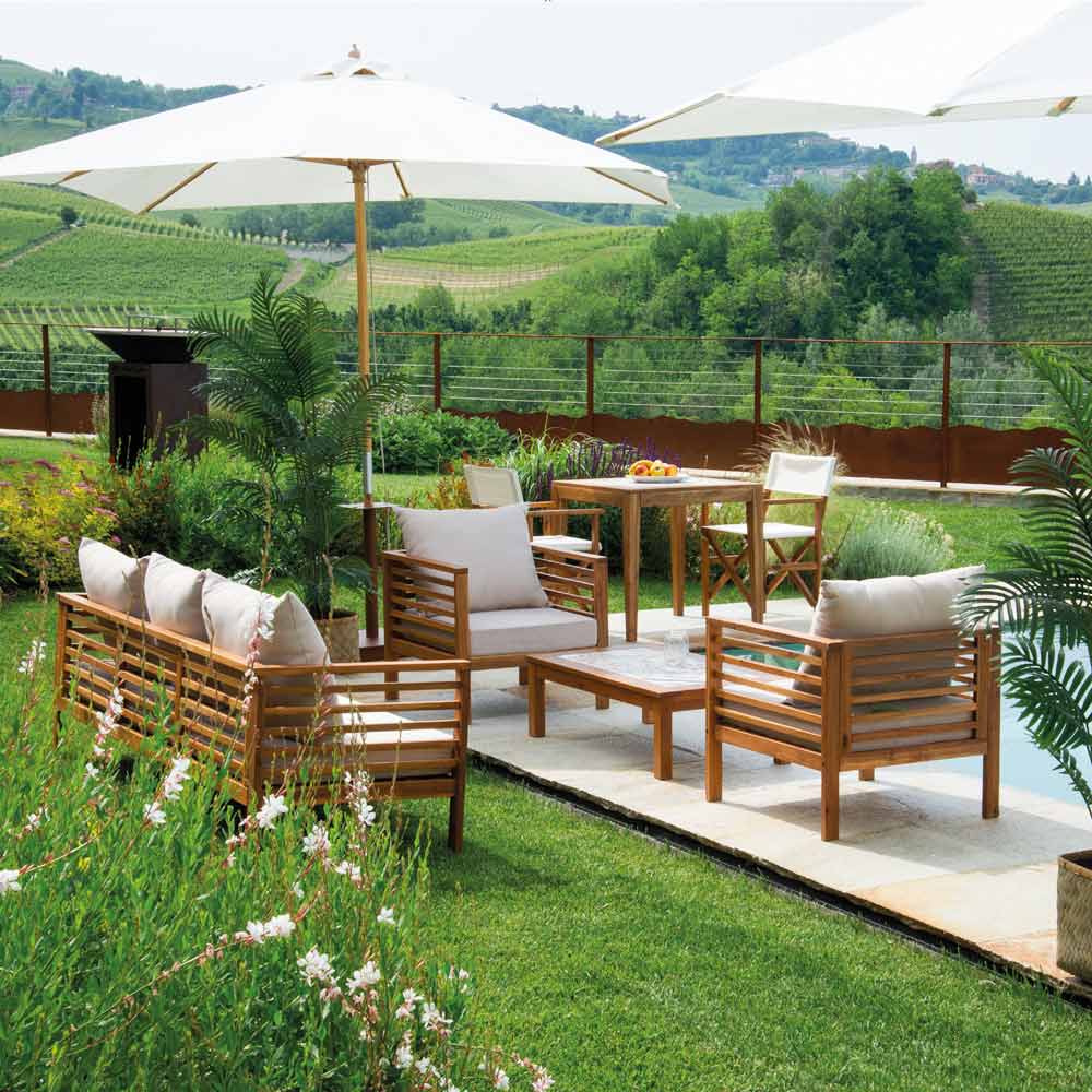 Ky grup është një zgjedhje e gjithanshme që përshtatet në mënyrë të përkryer si brenda ashtu edhe jashtë, duke përballuar kushte të ndryshme të motit falë konstruksionit të fortë të drurit të trajtuar. Ideale për ata që kërkojnë një dhomë të sofistikuar të jetesës pa sakrifikuar funksionalitetin dhe rehatinë.