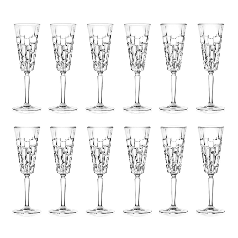 Set i gotave të flautit në eko kristal të zbukuruar me gdhendje, 12 copë të prodhuara në Itali.