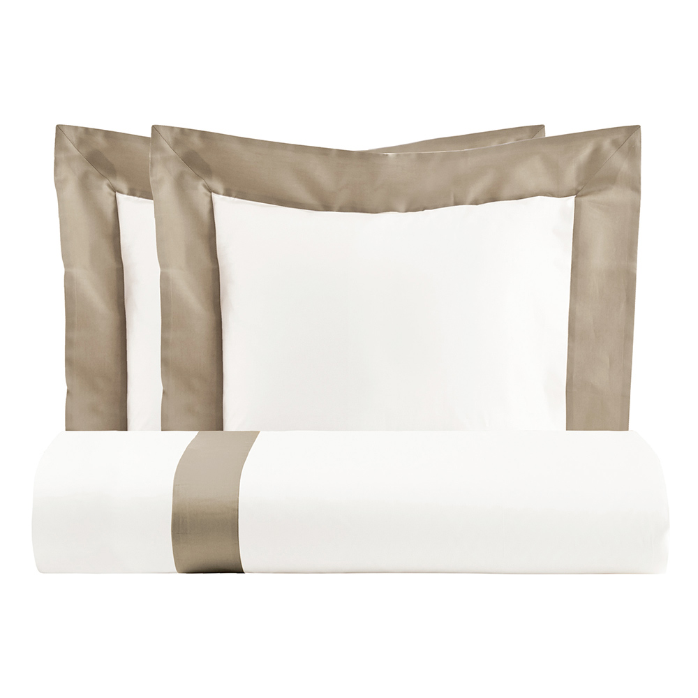 Pambuku i pastër siguron frymëmarrje të jashtëzakonshme, duke ju mbajtur të freskët gjatë gjithë natës, ndërsa llamba prej sateni shton një shkëlqim delikate dhe teksturë luksoze që bie në sy dhe përkëdhel lëkurën. Cilësia e pëlhurës me numër prej 300 fijesh siguron qëndrueshmëri dhe rezistencë ndaj larjes , duke ruajtur cilësitë e saj estetike dhe prekëse me kalimin e kohës.