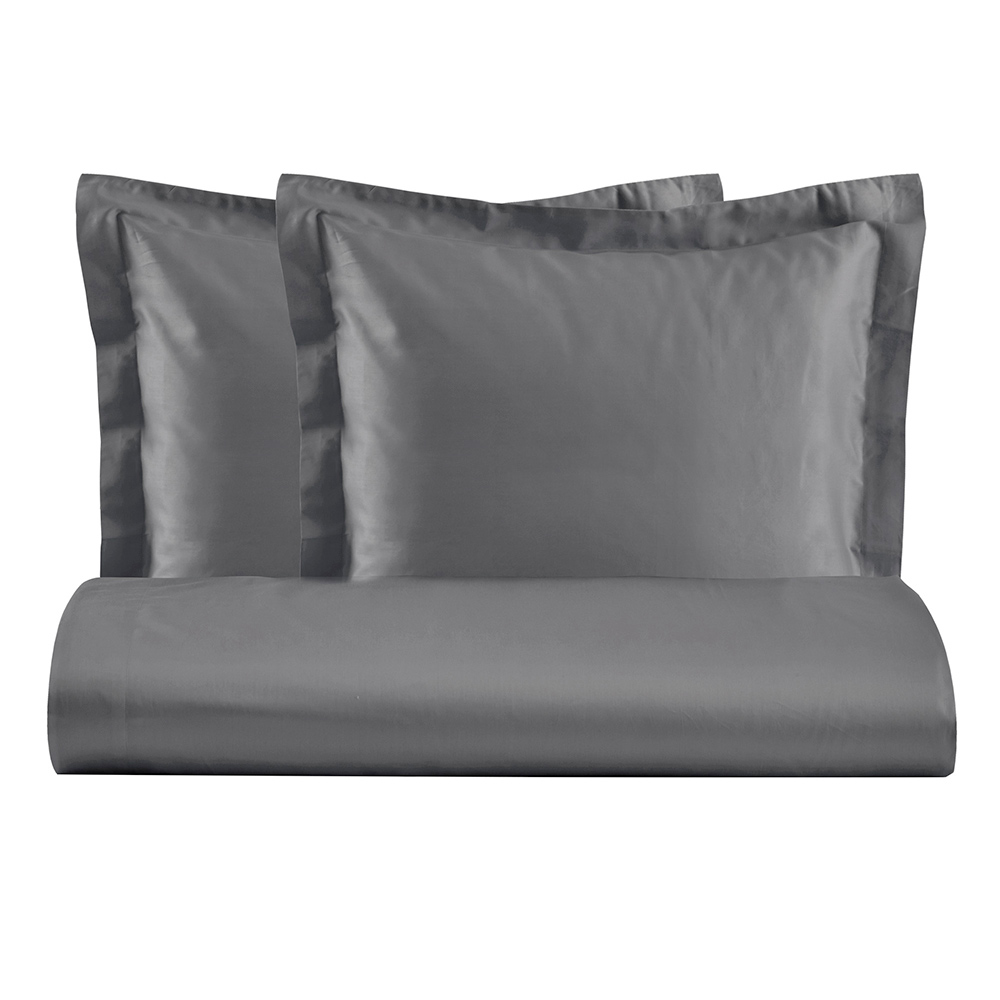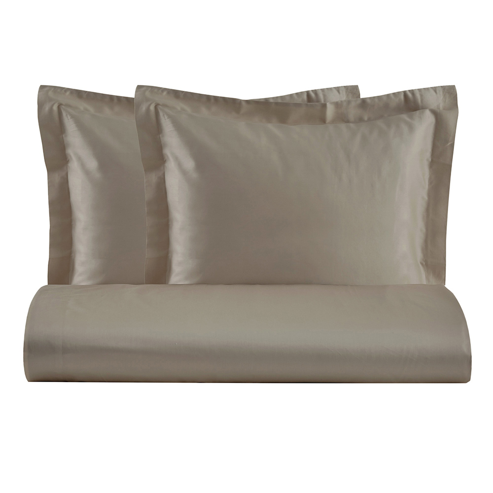 Elegant dhe i sofistikuar, dizajni i thjeshtë por i rafinuar i këtij kompleti të krevatit përshtatet në mënyrë të përkryer me çdo stil dekori, nga dhomat e gjumit moderne deri tek ato më klasike, duke e ngritur pamjen e dhomës me një ndjenjë elegance të pastër . Cilësia e pëlhurës jo vetëm që siguron qëndrueshmëri të jashtëzakonshme, duke i rezistuar larjes së shpeshtë pa humbur hijeshinë e saj, por gjithashtu nxit frymëmarrjen , e cila është thelbësore për pushim optimal.
