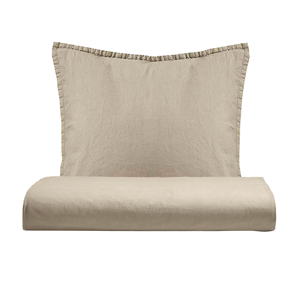 Kompleti i mbulesës së pambukut të pastër të ngjyrosur me veshje përfaqëson përsosmërinë në fushën e shtratit, duke ofruar jo vetëm rehati superiore, por edhe një estetikë të rafinuar. Ky set, i bërë me teknika artizanale të ngjyrosjes, garanton një ngjyrë të pasur dhe të qëndrueshme që i jep një prekje elegance çdo dhomë gjumi. Kujdeset për çdo detaj për të siguruar një butësi të pashoqe , ideale për t'u përkëdhelur gjatë netëve të freskëta.