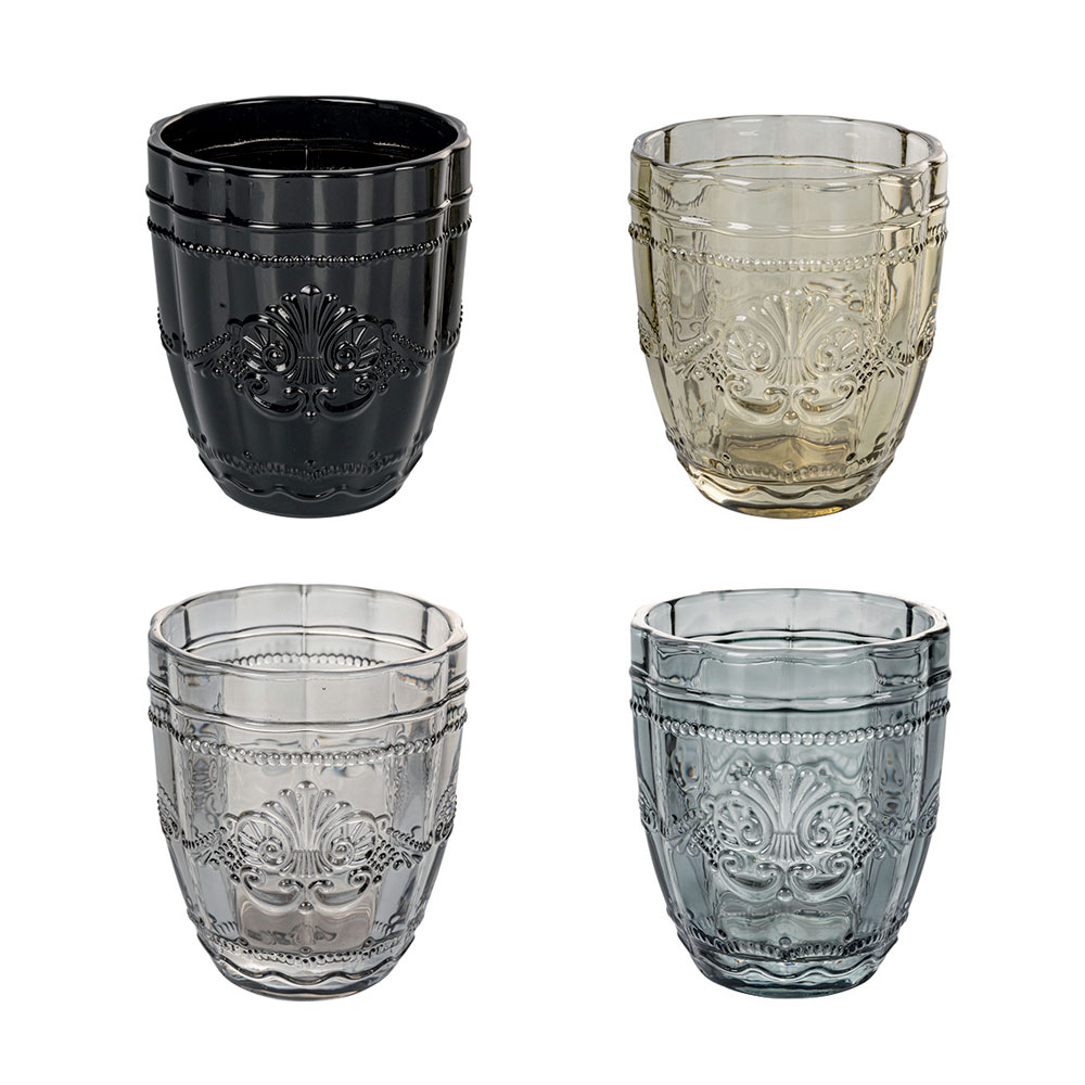 Ky grup prej 12 gotash është një triumf i dritës dhe ngjyrës , me nuanca të ngrohta që kujtojnë mrekullitë e natyrës dhe peizazhet e vjeshtës. Çdo gotë është një vepër e vogël arti që sjell me vete ngrohtësinë e ngjyrave. Të gdhendura me modele që ngjallin zbukurime me lule nga epokat e shkuara, këto syze shtojnë një prekje elegance klasike në çdo tryezë, duke festuar traditën e dizajnit .