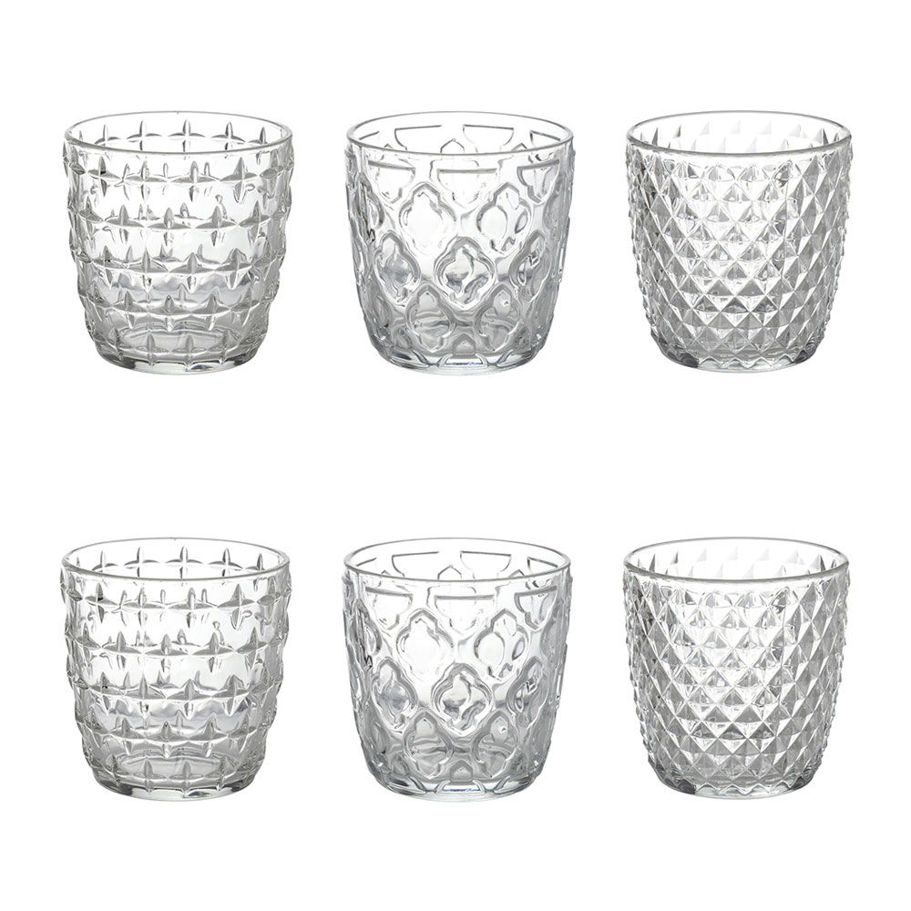 Ky grup prej 12 gotash xhami të pastër është një kryevepër e përsosmërisë dhe shkëlqimit . Çdo pjesë krenohet me një dizajn unik , me tekstura të ndërlikuara që variojnë nga modelet gjeometrike në ato organike, duke reflektuar dritën në lojërat e shkëlqimit dhe thyerjes . Kompleti përbëhet nga variacione stili që përfshijnë prerjen klasike të diamantit, valëzimet elegante dhe gdhendjet e rafinuara me lule, duke ofruar jo vetëm një gotë për çdo pije, por edhe për çdo personalitet. Këto gota janë perfekte për të shërbyer ujëra aromatike ose kokteje të sofistikuara, duke i dhënë një prekje magjepsëse çdo rasti. Ato janë simboli i elegancës së përjetshme , të krijuara për ata që duan të rrethojnë veten me objekte që tregojnë histori të mjeshtërisë dhe dizajnit tradicional .