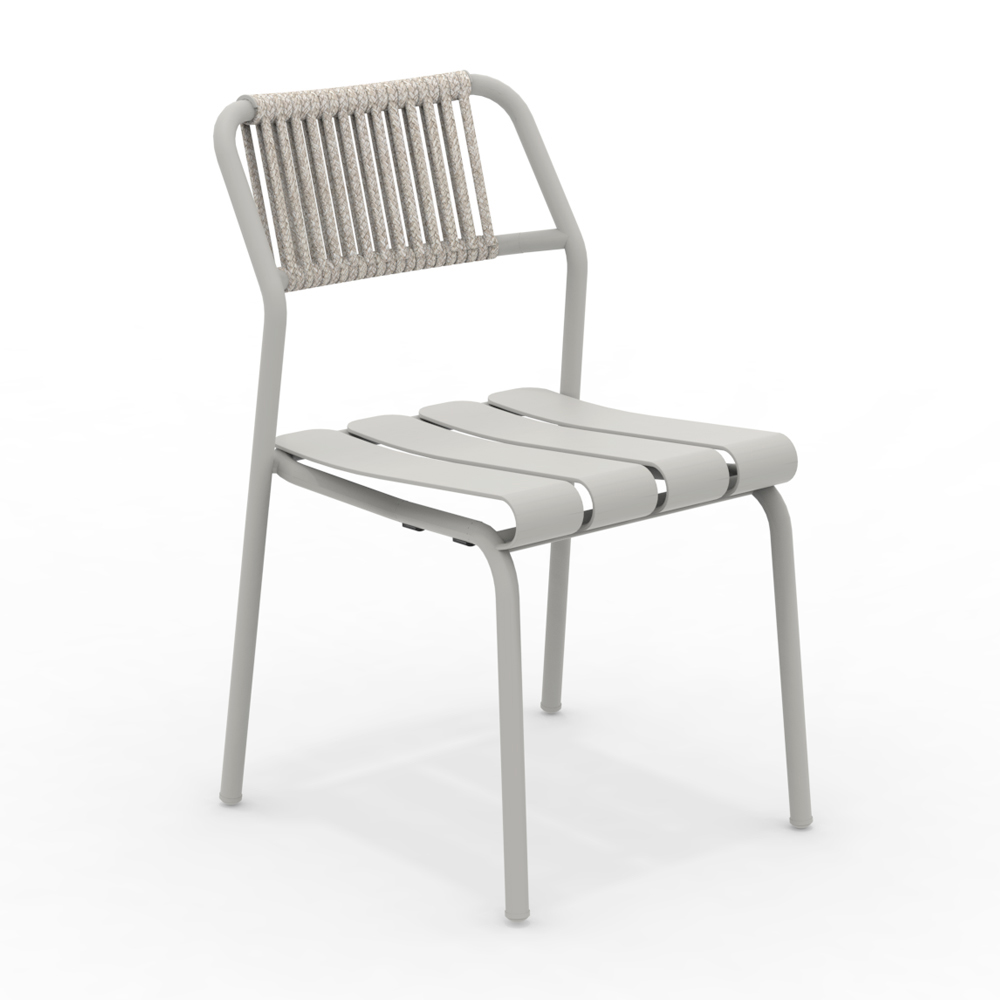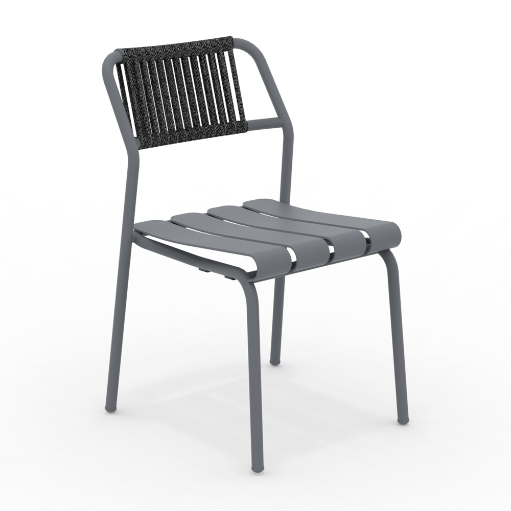 Struktura e lehtë por e fortë është projektuar për të ofruar rehatinë më të mirë, me një ndenjëse ergonomike dhe një mbështetëse shpine të formuar në litar , të cilat sigurojnë një mbështetje të rehatshme dhe relaksuese. Librat e aluminit i japin një pamje dinamike dhe moderne, ndërsa përfundimi shton një prekje elegance dhe rafinimi.