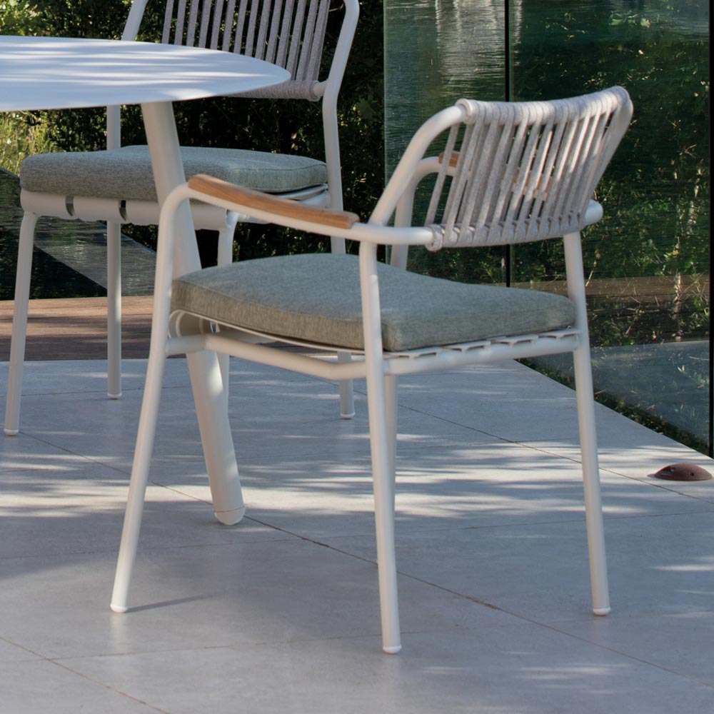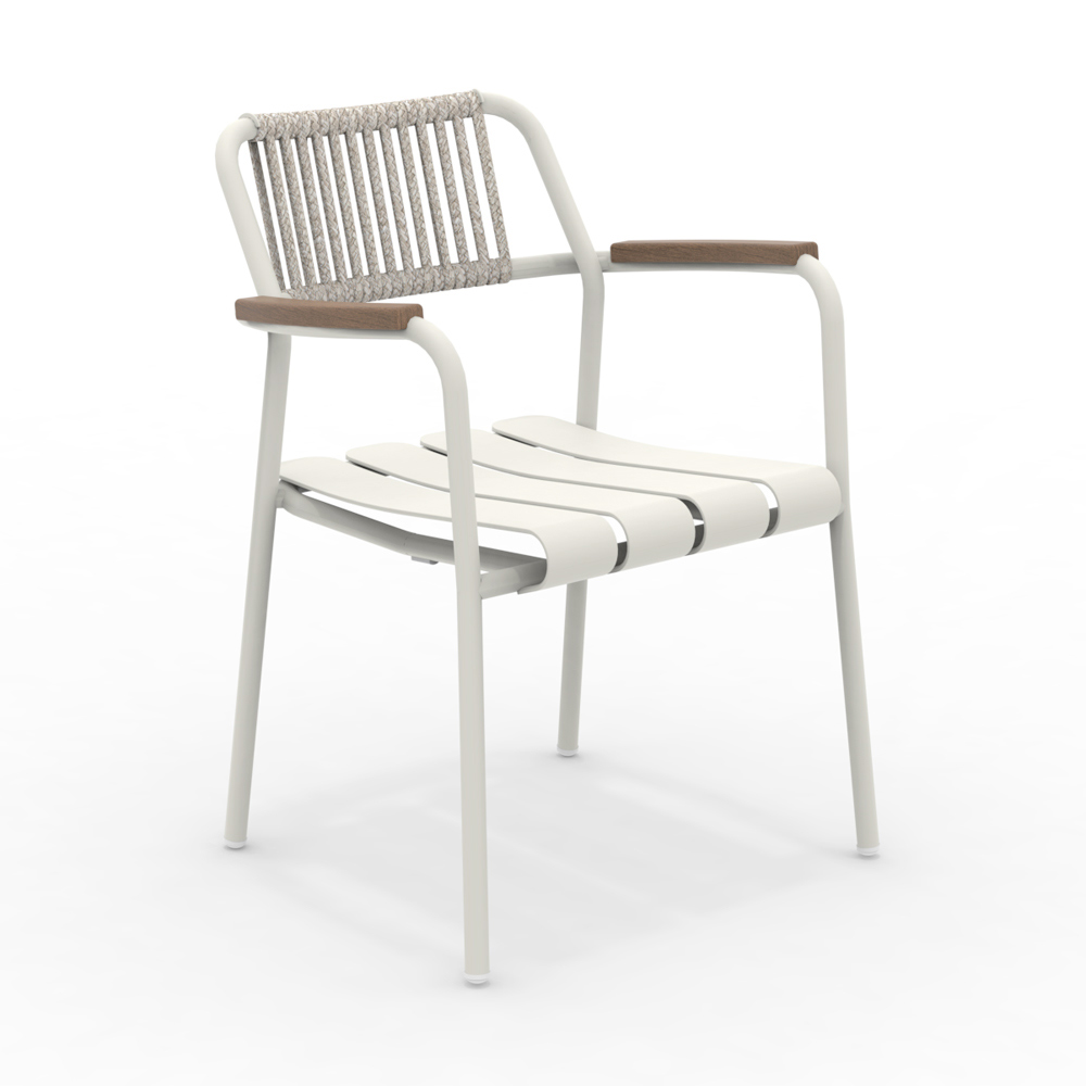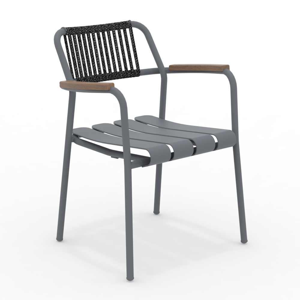 Struktura e lehtë por e fortë është projektuar për të ofruar rehatinë më të mirë, me një ndenjëse ergonomike dhe një mbështetëse shpine të formuar në litar , të cilat sigurojnë një mbështetje të rehatshme dhe relaksuese. Librat e aluminit i japin një pamje dinamike dhe moderne, ndërsa përfundimi shton një prekje elegance dhe rafinimi.