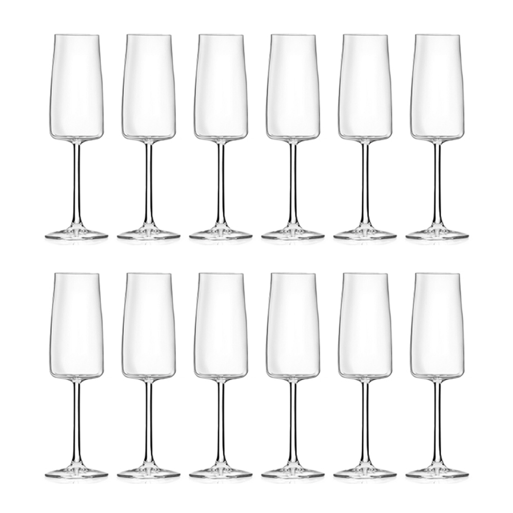 Verë të gazuar ose gota të flautit të shampanjës në eko kristal minimal, 12 copë të prodhuara në Itali.