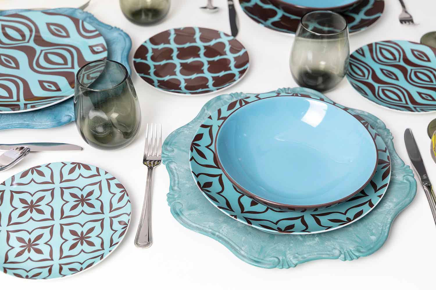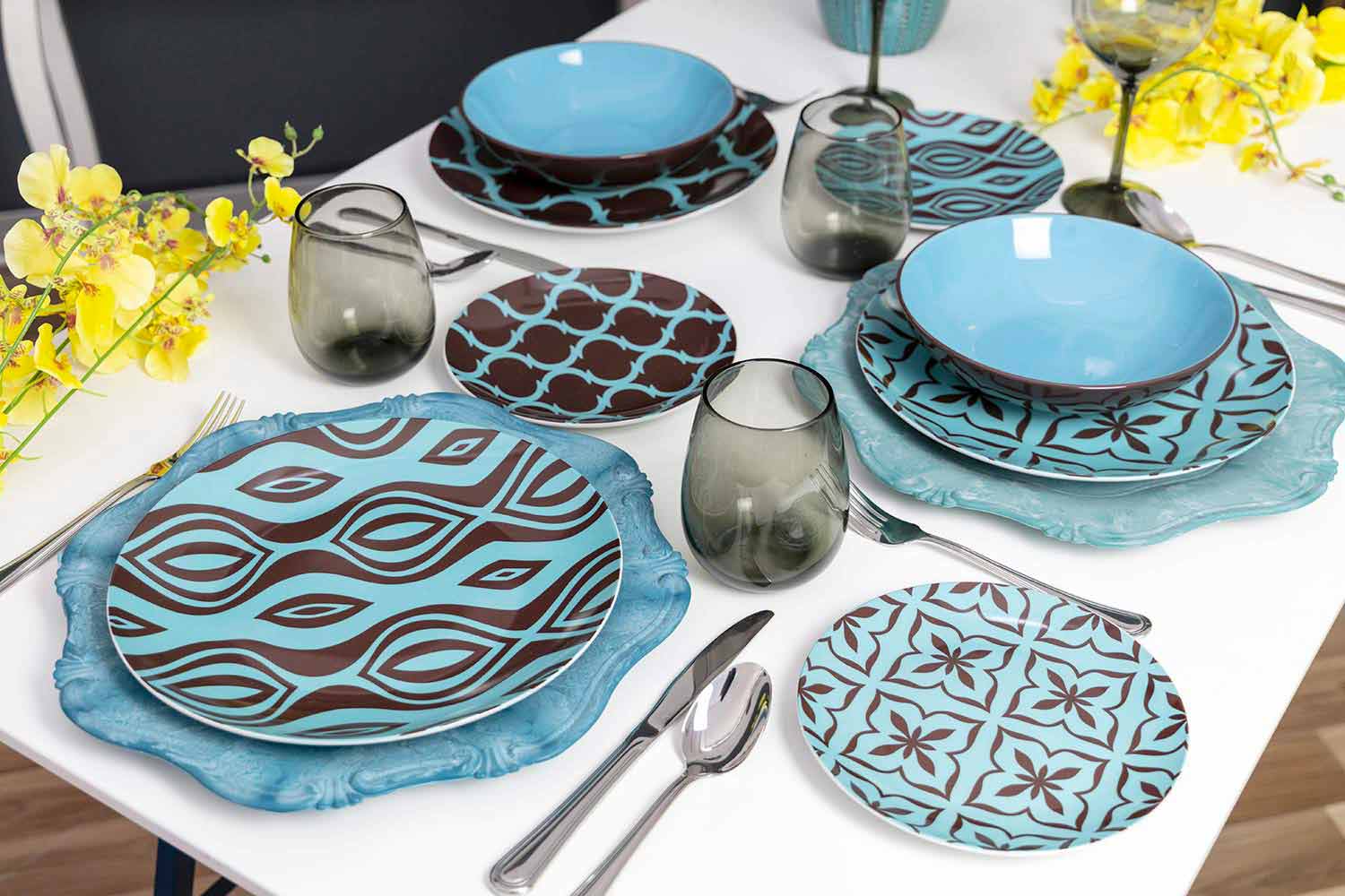 | Masat | Pllaka e dekoruar e sheshtë: diametri 27 x h. 3 cm (pesha: 666 gr) Pllaka e supës së ngurtë: diametri 21 x h. 5 cm (pesha: 592 gr) Pllaka frutash e dekoruar: diametri 19 x h. 2 cm (pesha: 310 gr) |