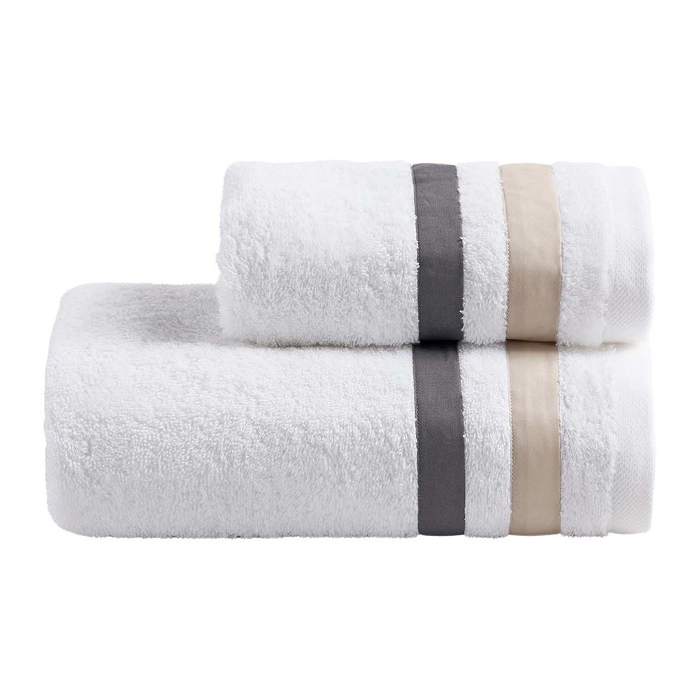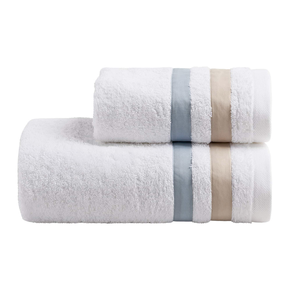Set peshqir fytyre + peshqir mysafiri ne sfungjer pambuku te paster 530 gr/m2 me sfera te dyfishta ne percale pambuku te paster 200 tc.