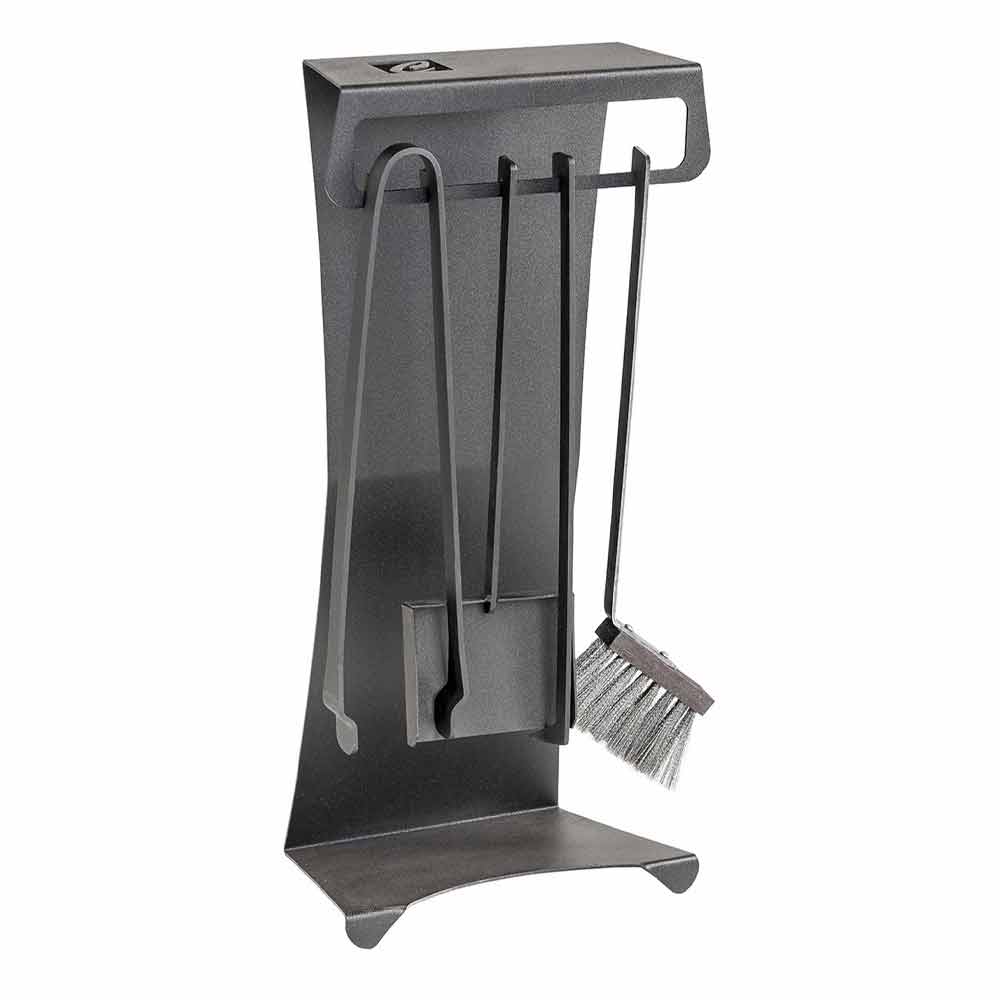Mbajtëse për mjete dyshemeje për oxhak në çelik të zi me këmbë të vendosura nga 4 pjesë të dizajnit modern prodhuar në Itali