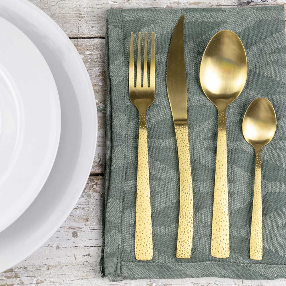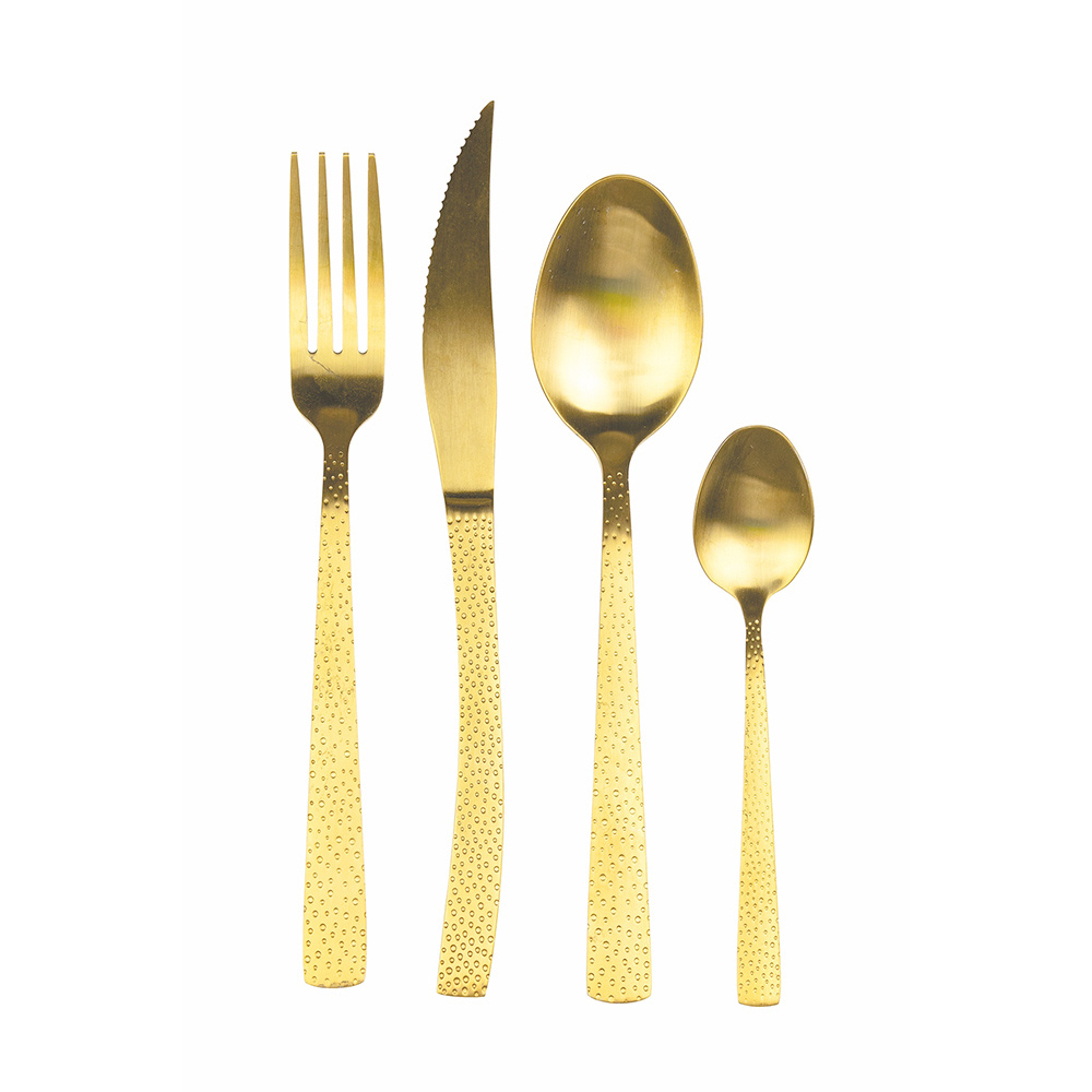 Seti përbëhet nga 6 lugë çaji, 6 lugë, 6 pirunë, 6 thika.