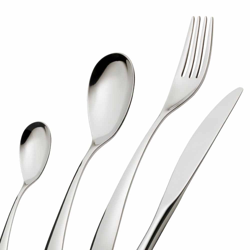 vija të rrumbullakosura dhe të rrëmbyeshme , të cilat paraqesin lakime të theksuara dhe të veçanta të dorezës, veçanërisht të pirunëve dhe lugëve, të cilat krijojnë