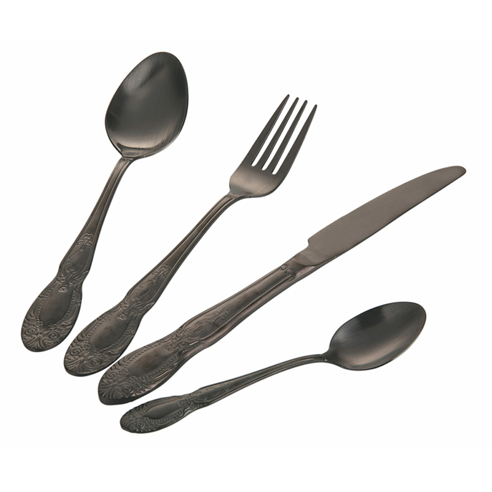 Një shërbim romantik, i bërë prej çeliku të krehur me dekorime të mrekullueshme barok në dorezë, për një efekt të rafinuar në një stil elegant të stuhishëm.