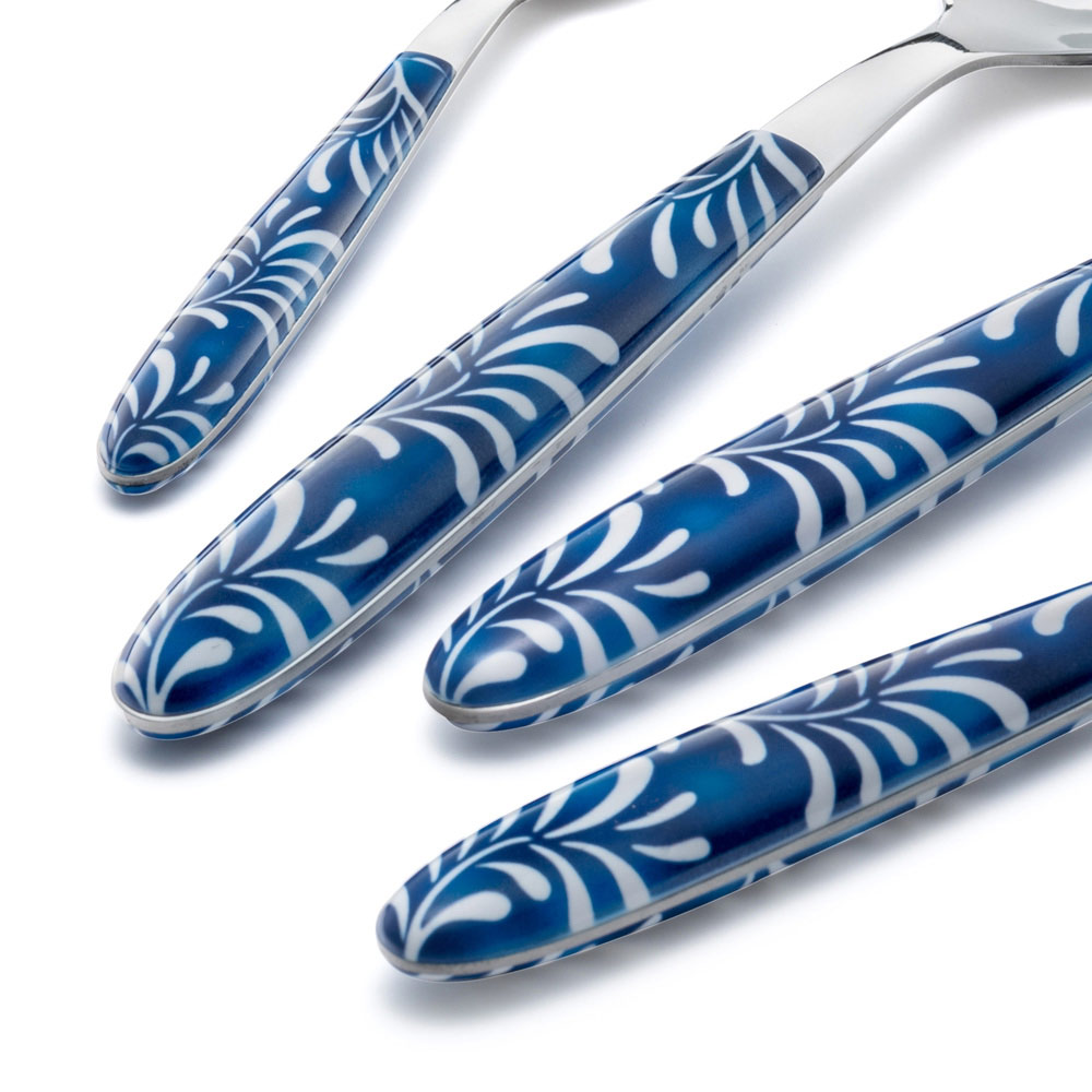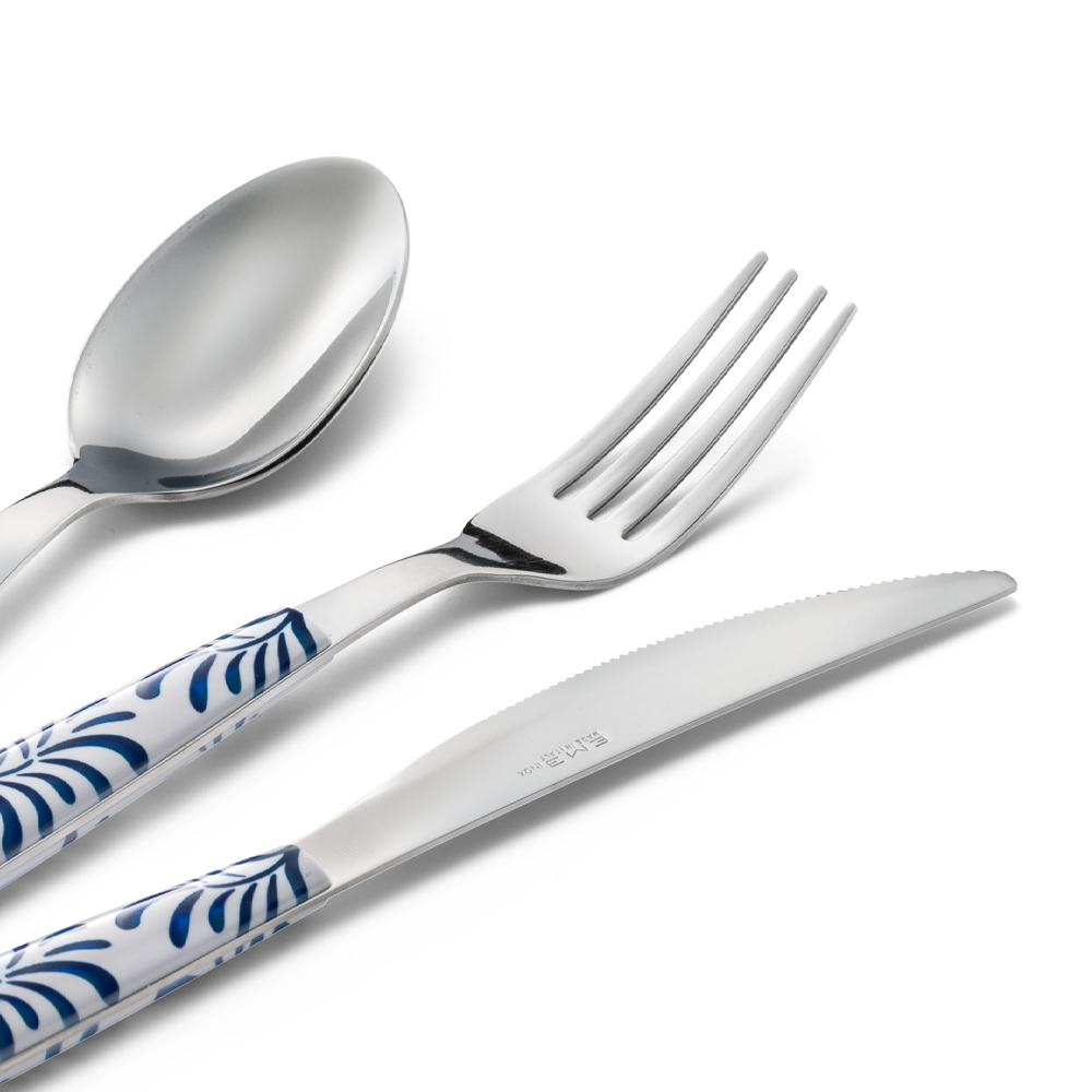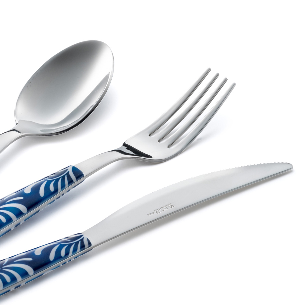Komplet takëm inoksi dhe dorezë plastike e dekoruar me ngjyrë të bardhë ose blu, 24 copë prodhim Itali.