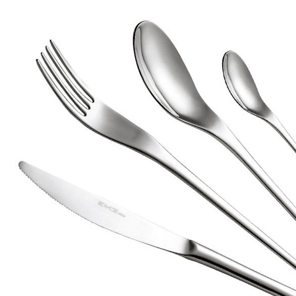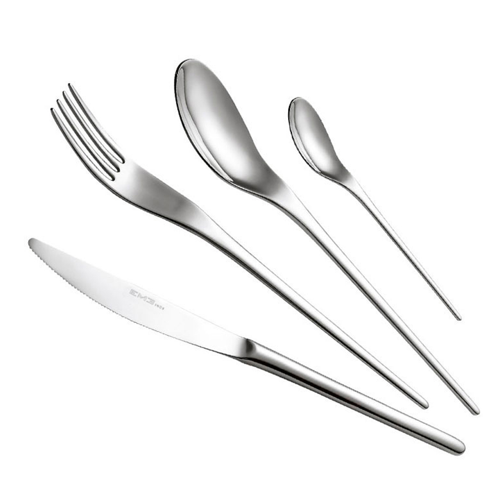 Komplet takëm me çelik inox të lëmuar, dizajn i hollë në stilin oriental, 24 copë të prodhuara në Itali.